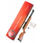 У винтовки в отличие от оригинальной модели приклад и цевье произведены из натурального дерева, благодаря чему винтовка смотрится очень солидно и дорого. Конструкция приклада комфортна и удобна. Ствол является стальным и имеет нарезку внутри, что благоприятно отражается на постоянстве, меткости полета пули, ее высокой скорости, кучности при стрельбе. Винтовка весит 3,6 кг при общей длине изделия в 1000 мм.