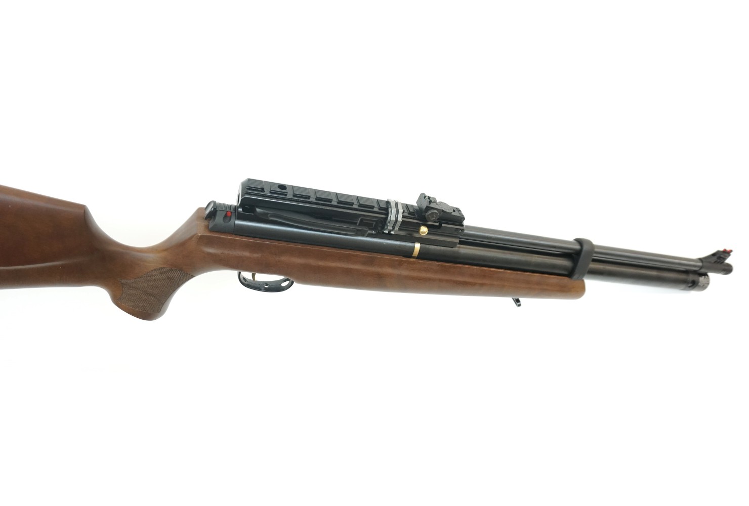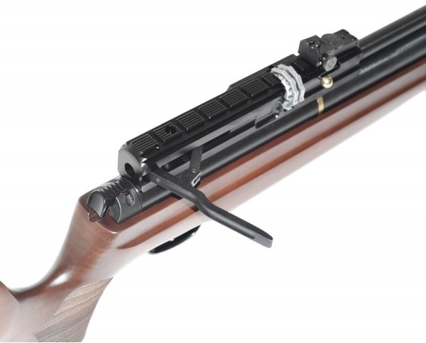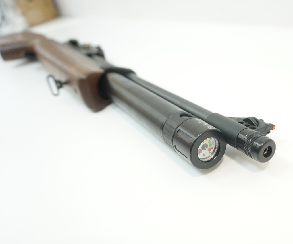 Винтовка оснащена системой РСР, работая на основе предварительной накачки сжатого воздуха. Объем воздушного резервуара составляет 180 см³, а давление - 200 бар. Также данный резервуар оснащен манометром, что очень удобно.
