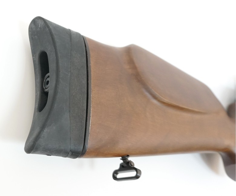 У винтовки в отличие от оригинальной модели приклад и цевье произведены из натурального дерева, благодаря чему винтовка смотрится очень солидно и дорого. Конструкция приклада комфортна и удобна. Помимо этого отличия, ствол модели увеличен и имеет длину - 495 мм. Ствол является стальным и имеет нарезку внутри, что благоприятно отражается на постоянстве, меткости полета пули, ее высокой скорости, кучности при стрельбе. Винтовка весит 3,3 кг при общей длине изделия в 1000 мм.