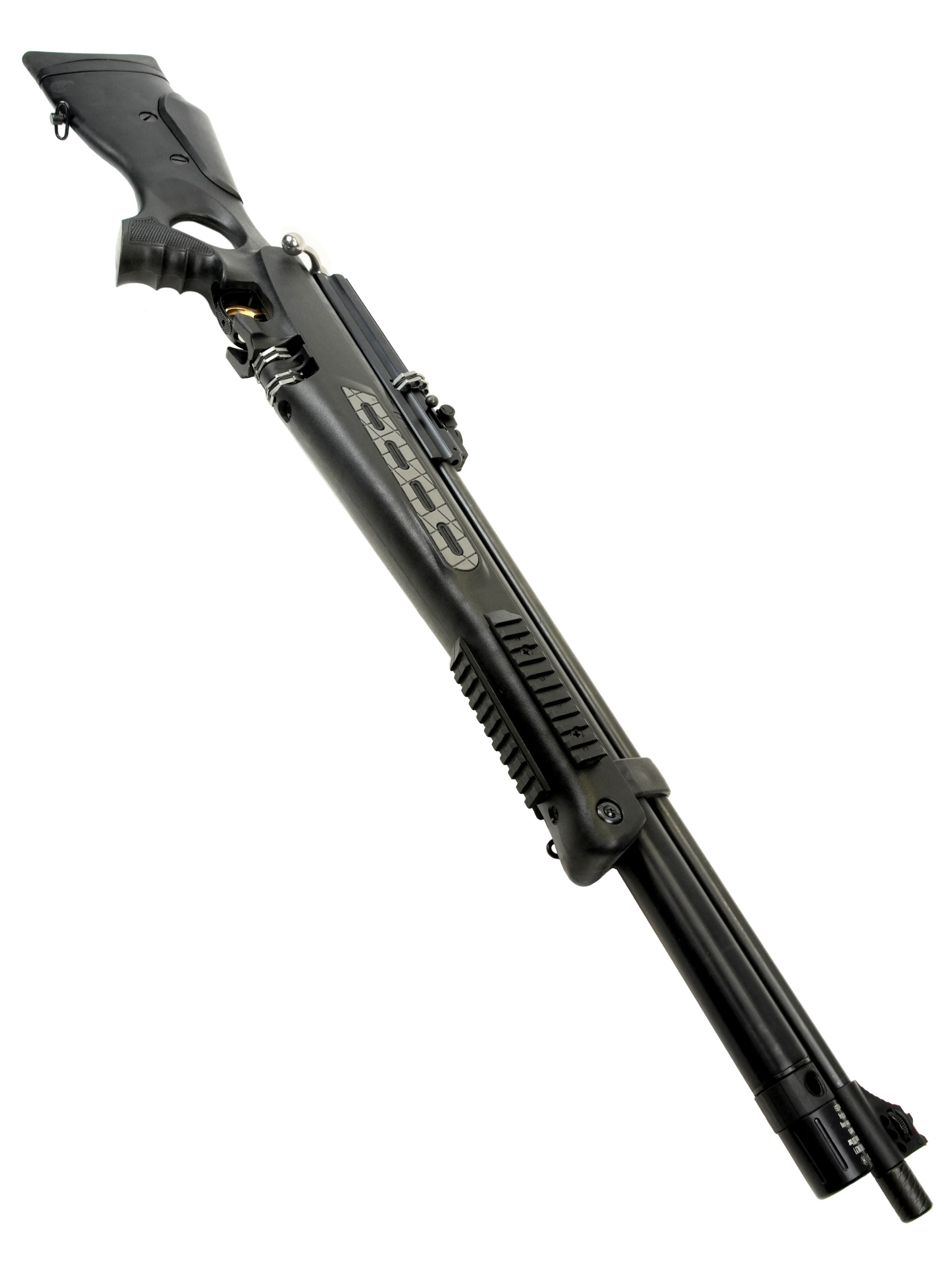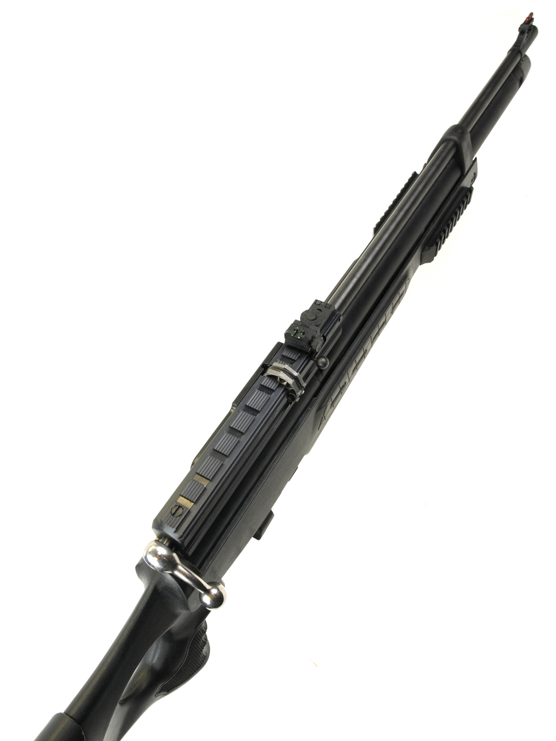 Емкость баллона со сжатым воздухом – 255 куб. см., установленный по умолчанию в этом оружии режим стрельбы позволяет произвести до 80 выстрелов. Ствол винтовки нарезной, длиной 580 мм, выполнен из хорошей оружейной стали.