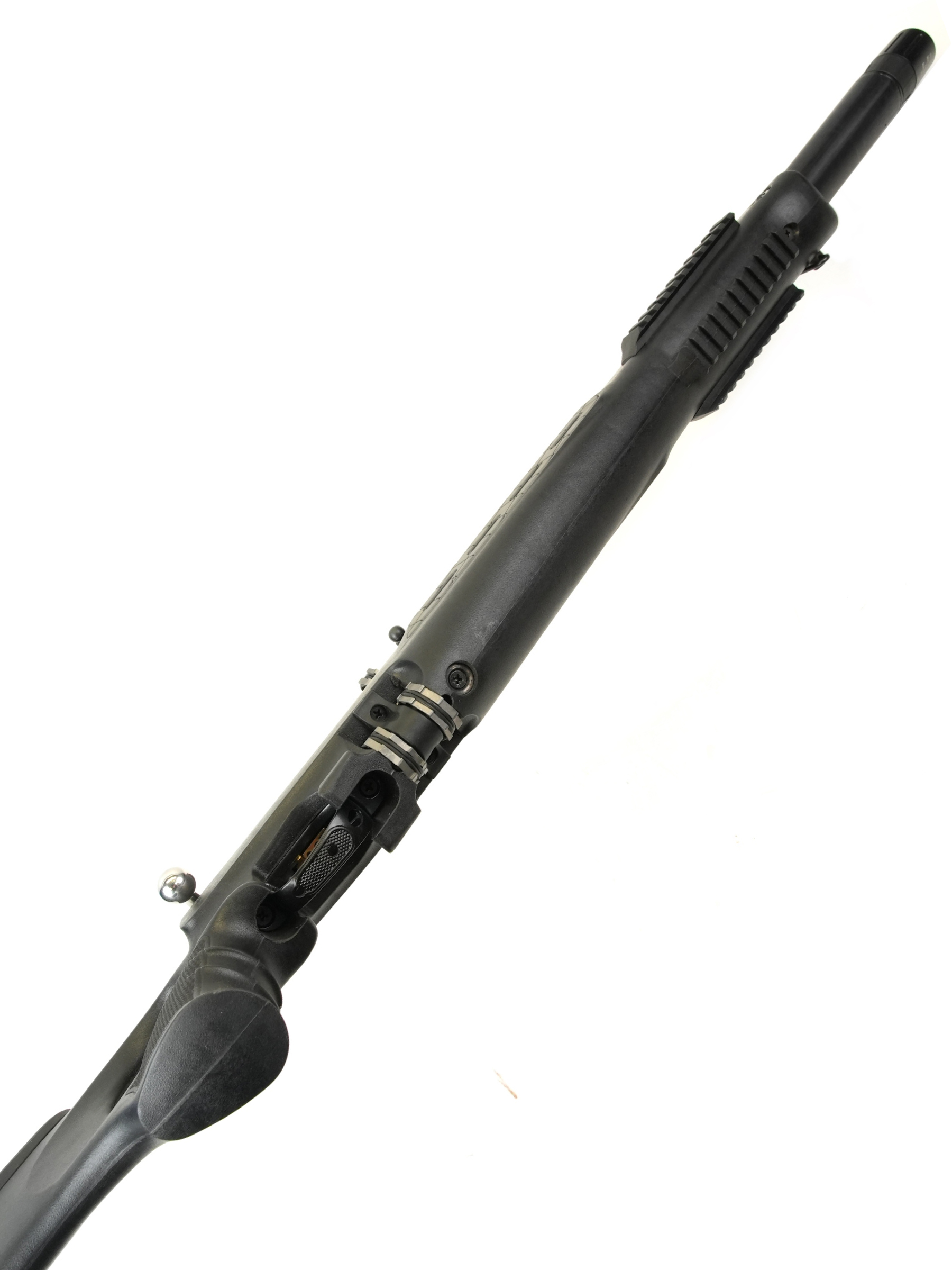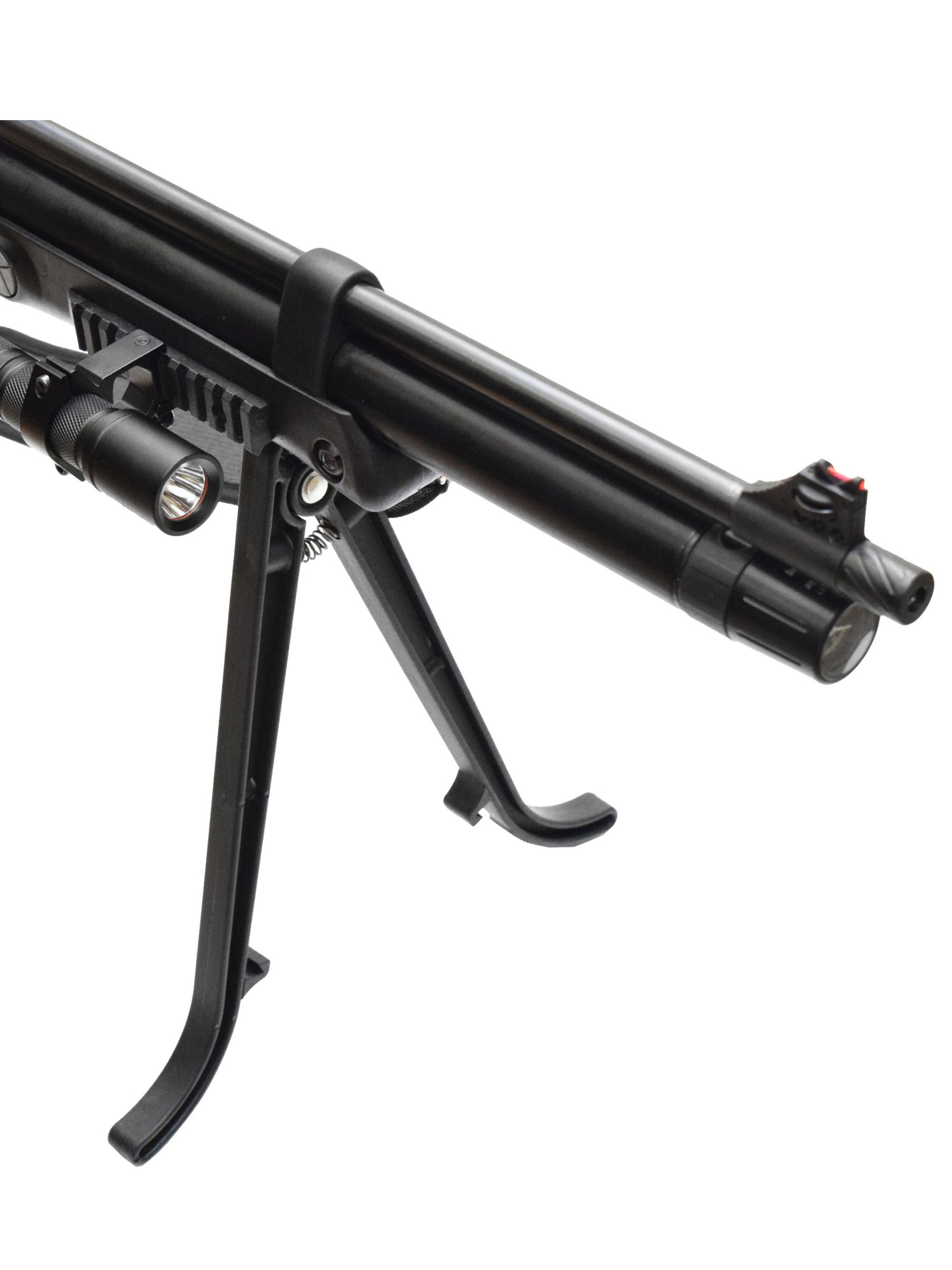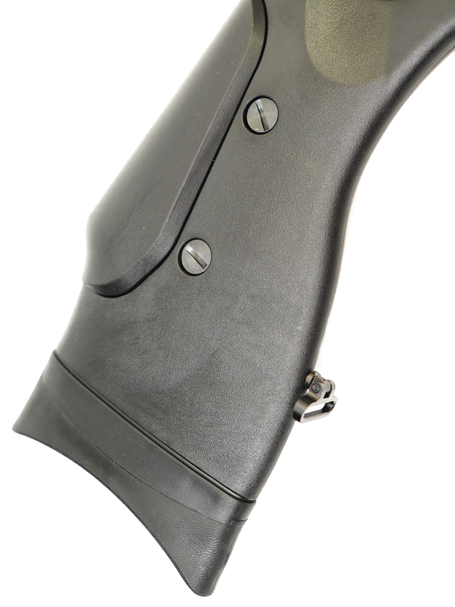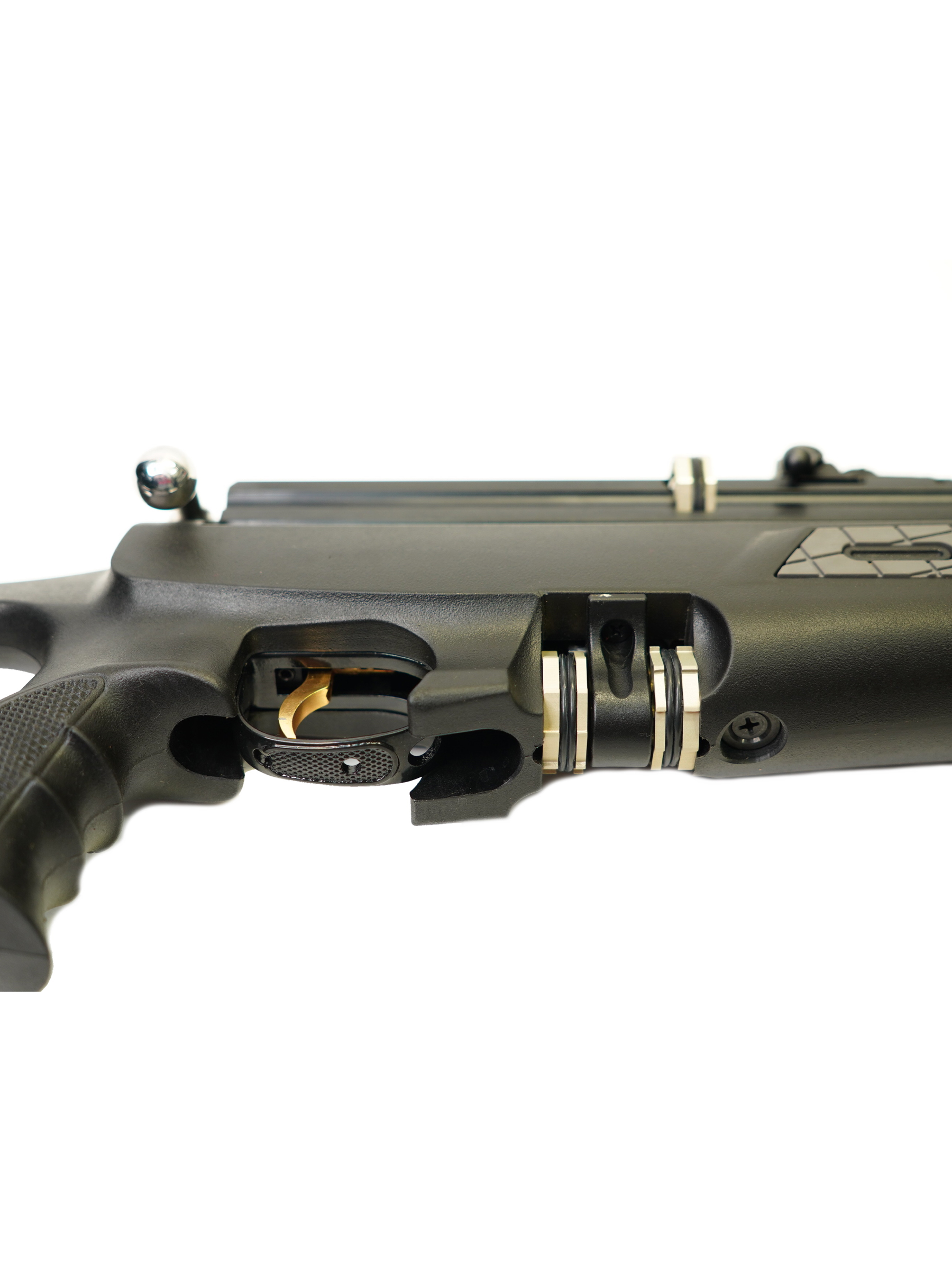Корпус этой модели выполнен из качественного пластика, рукоять пистолетного типа, имеющая удобный вырез для большого пальца, что позволяет стрелять с обеих рук. За счет использования регулируемых щек и затыльника каждый пользователь сможет настроить винтовку под свои анатомические особенности, повышая тем самым точность и комфорт стрельбы.