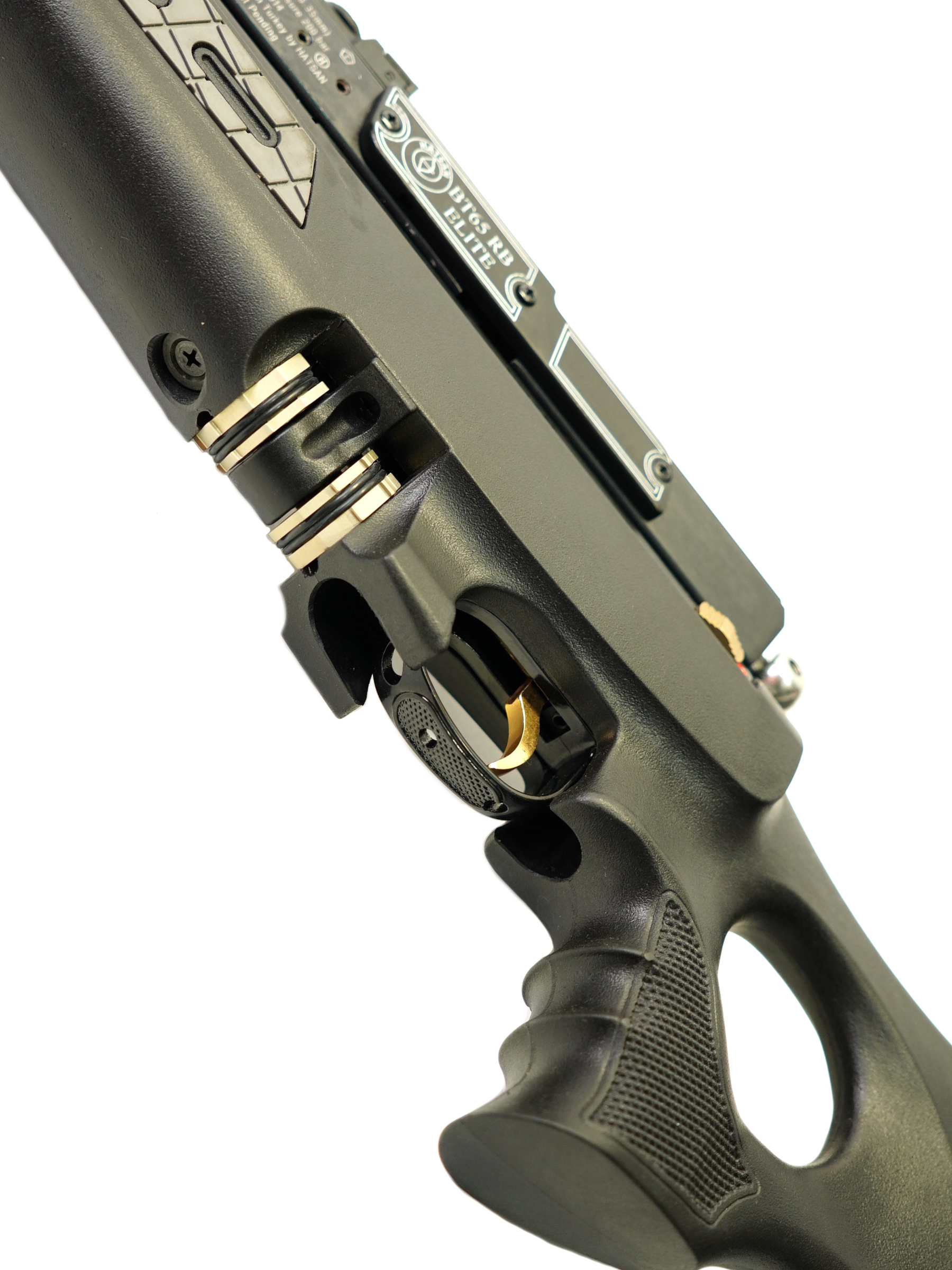 Hatsan BT 65 RB Elite представляет собой пневматику с предварительной накачкой (PCP). Емкость со сжатым воздухом расположена здесь ниже ствола, взведение ударника и досыл пули в ствол выполняется поворотом бокового заднего рычага. Источником энергии в этой винтовке выступает баллон высокого давления, сообщающий пуле начальную скорость в 330 м/с.