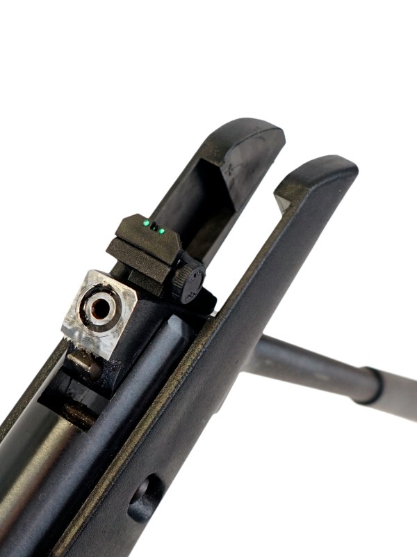 Такого показателя Hatsan добились благодаря замене некоторых элементов на высококачественный пластик. На данной модели установлена мушка с фиберогласовыми нитями. Это значительно упрощает стрельбу новичку. Если у вас возникнет желание поставить на винтовку оптический или лазерный прицел, вы сможете это сделать благодаря наличию одиннадцатимиллиметровой планки.