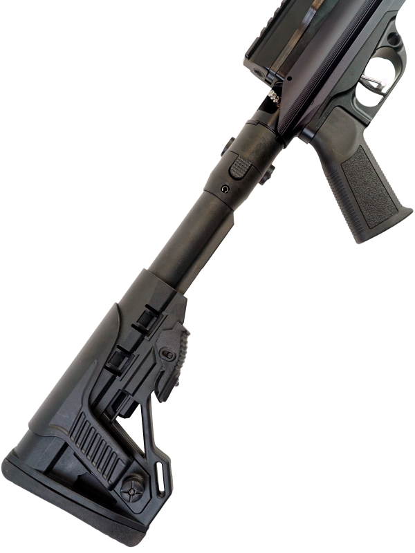 Винтовка выполнена из легкого и прочного алюминия, что делает её удобной для переноски и использования в любых условиях. Эргономичная рукоятка обеспечивает надежный хват, а регулируемый приклад позволяет адаптировать винтовку под индивидуальные особенности стрелка.