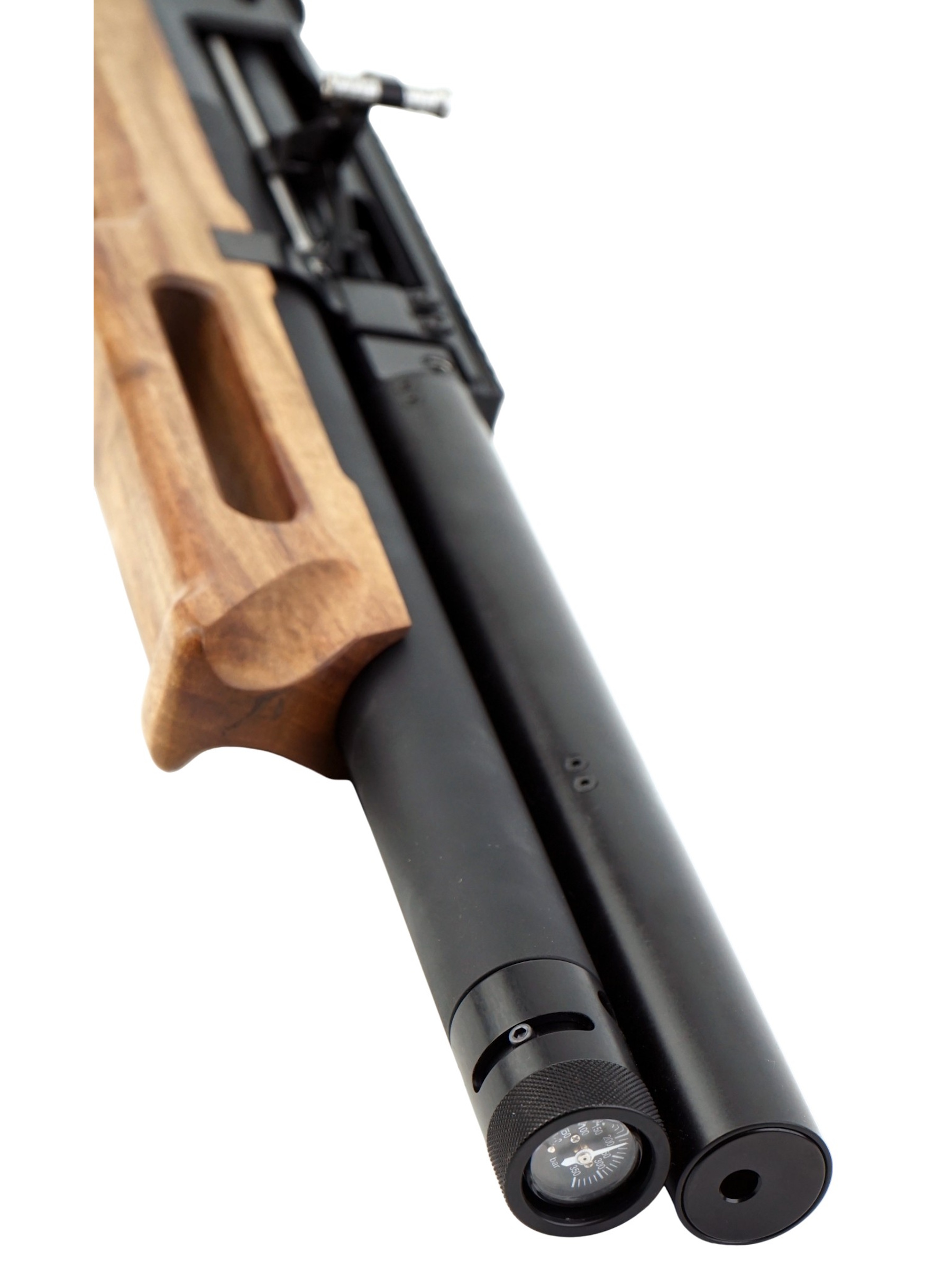 Модель имеет чок (сужение) на дульном срезе. Скорость выстрела составляет 90 м/с (в заводском исполнении), после усиления – до 315 м/с. Преимуществом данной модификации является оснащение резервуара сжатого воздуха редуктором, что положительно влияет на мощность винтовки и стабильность снарядов в полете, а значит – и на точность стрельбы. Резервуар объемом 550 см3 также оснащен манометром для контроля уровня давления.