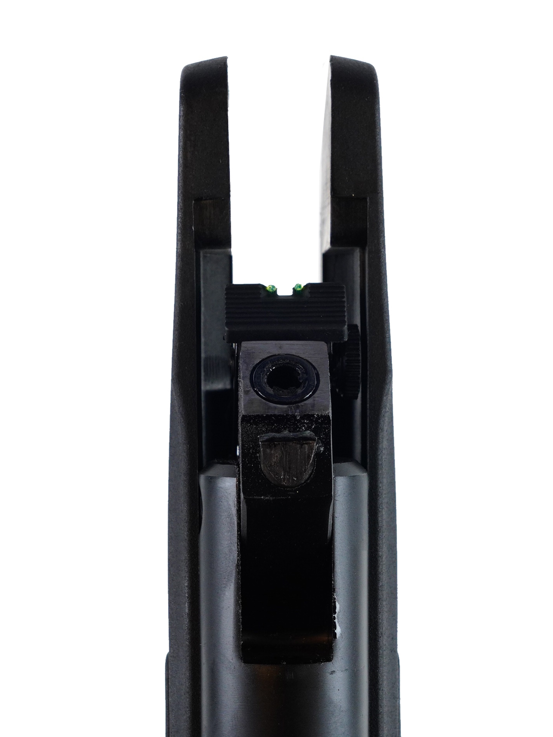Мушка и целик с возможностью регулировки выступают в качестве штатных приспособлений для наведения на мишень. Элементы снабжены светонакопительными вставками, что повышает их заметность в темное время суток. На коробке также присутствует направляющая «Ласточкин хвост» 11 мм под установку предпочитаемой оптики на соответствующих кольцах.