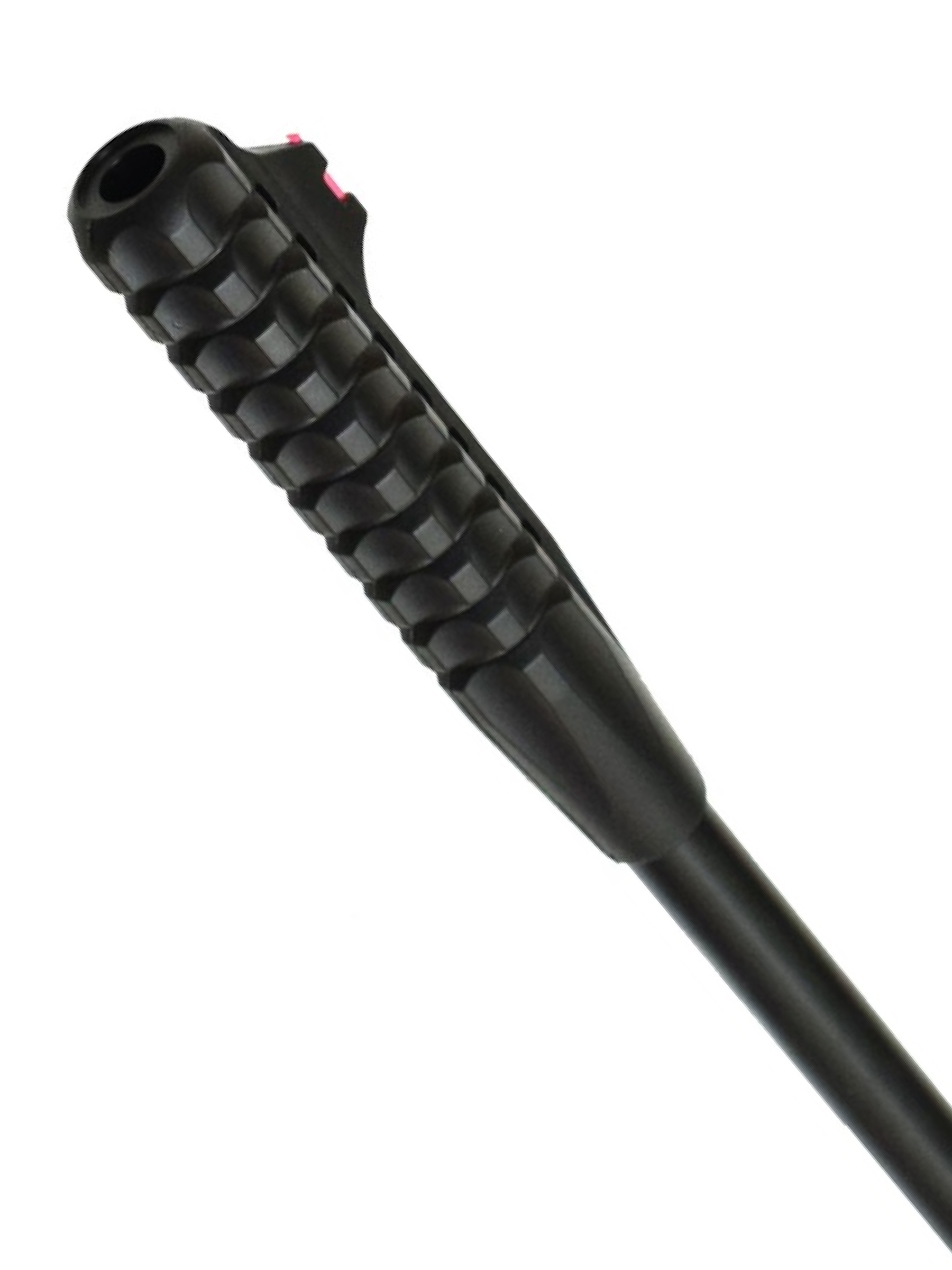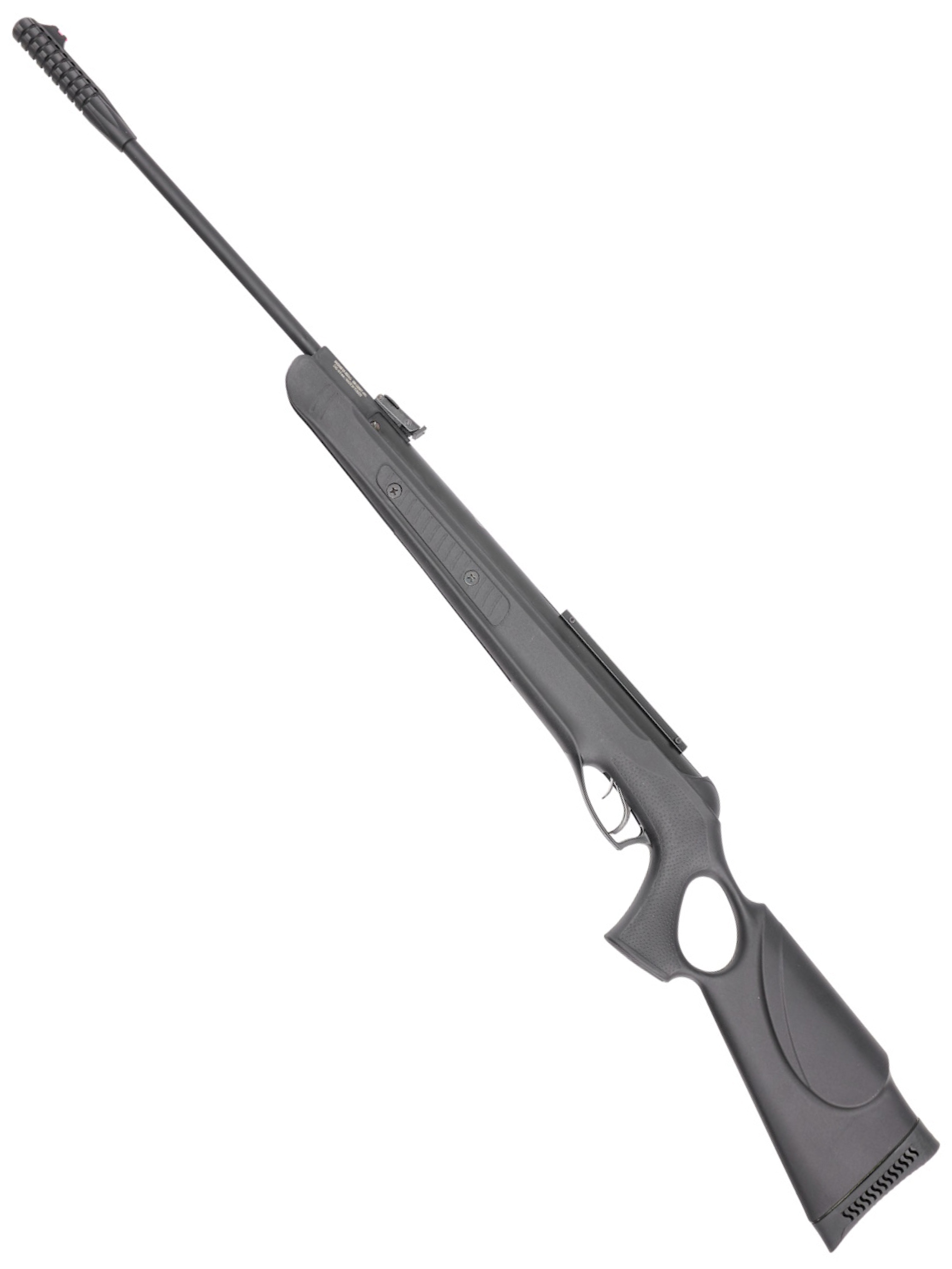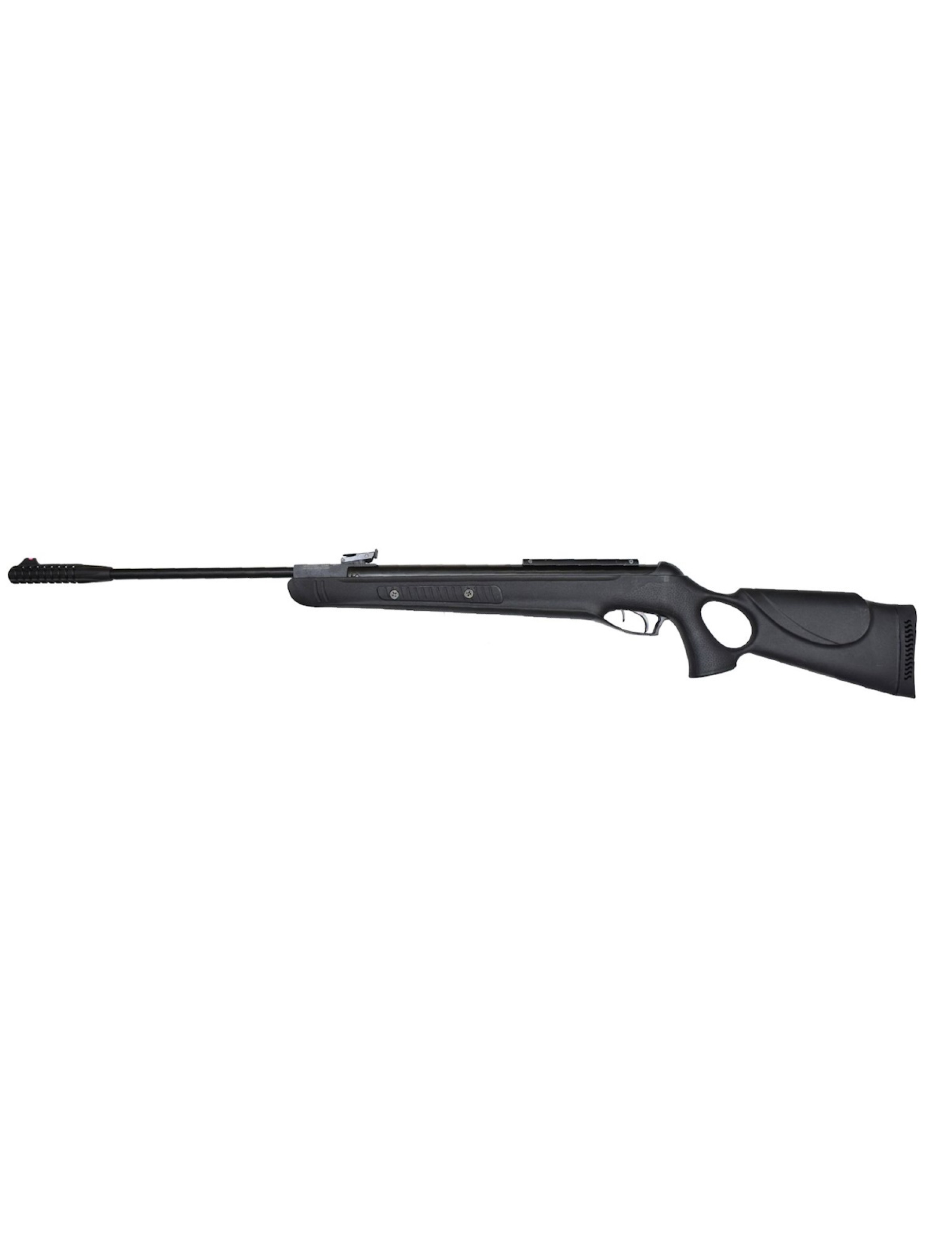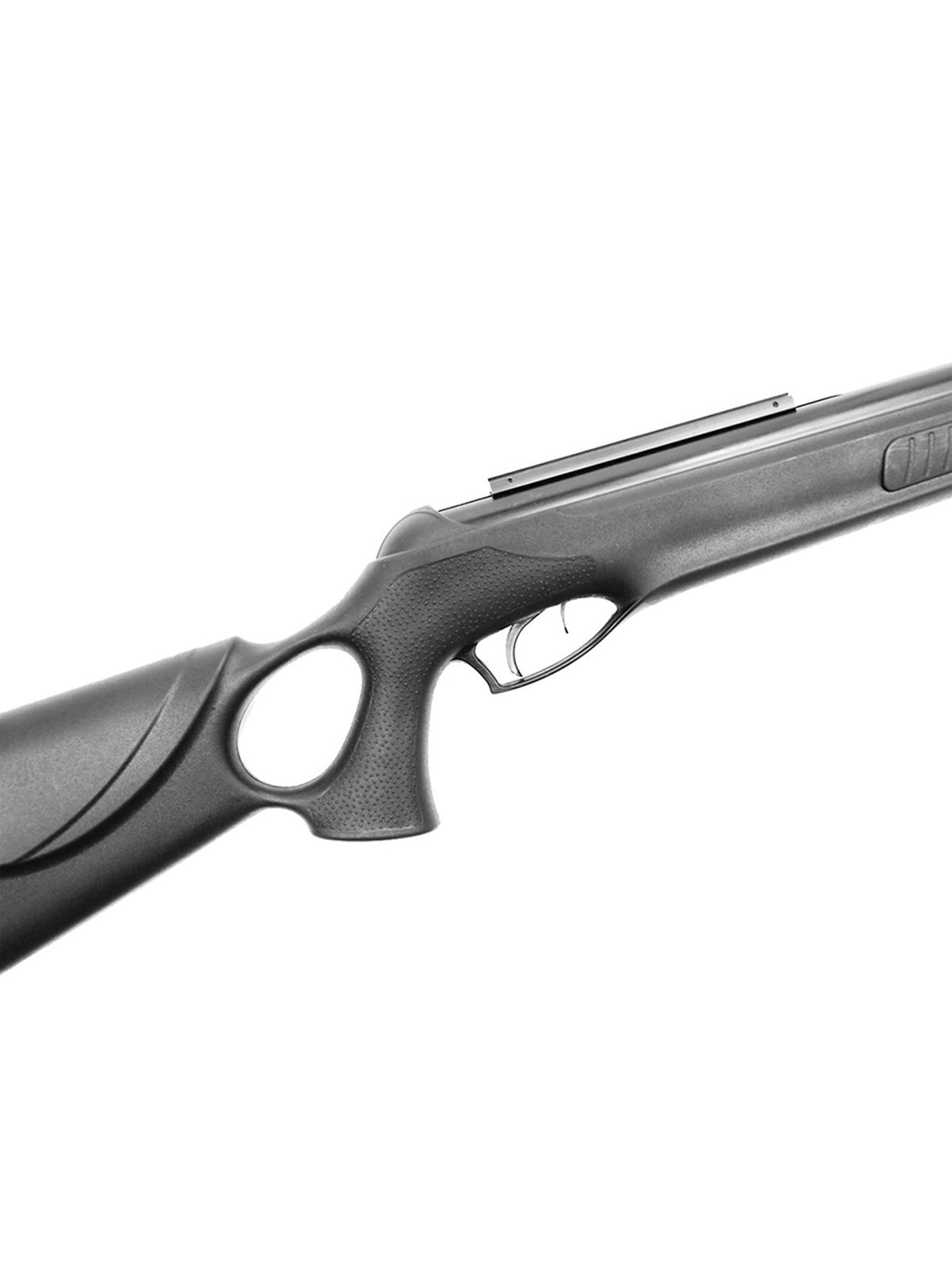Винтовка выполнена в классической компоновке - длина модели составляет 123 см, при этом масса не превышает 3.5 кг. В конкретном исполнении пневматика оснащается ложей из оружейного пластика черного цвета - полимер стойко выдерживает эксплуатацию в суровых условиях. Удобству удержания способствует приклад ортопедической формы с амортизирующим тыльником из каучука.