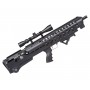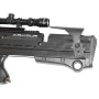 Приклад оборудован подщечником для комфорта стрелка при прицеливании. Наличие съемной тактической рукоятки еще больше повышает удобство эксплуатации винтовки, причем рукоятка может трансформироваться в сошки и использоваться для стрельбы из лежачего положения. Весит винтовка 4,1 кг при длине 79 см. Комплектация: два магазина, перепускной клапан усиления, заправочный штуцер, тактическая рукоятка, паспорт, а также кейс для транспортировки и хранения винтовки.