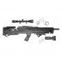Винтовка отличается лаконичным и даже брутальным исполнением, который не оставит равнодушным ни одного, даже самого требовательного стрелка. Изделие полностью выполнено из металлического сплава, корпус винтовки алюминиевый. При своей компактности (общая длина 79 см) винтовка отличается довольно длинным нарезным стволом – 53 см. Вес изделия всего 4,1 кг. Рукоять пистолетного типа обеспечивает удобное удержание оружия, имеется и дополнительная рукоять, трансформирующаяся в сошки для стрельбы лежа или от плеча.