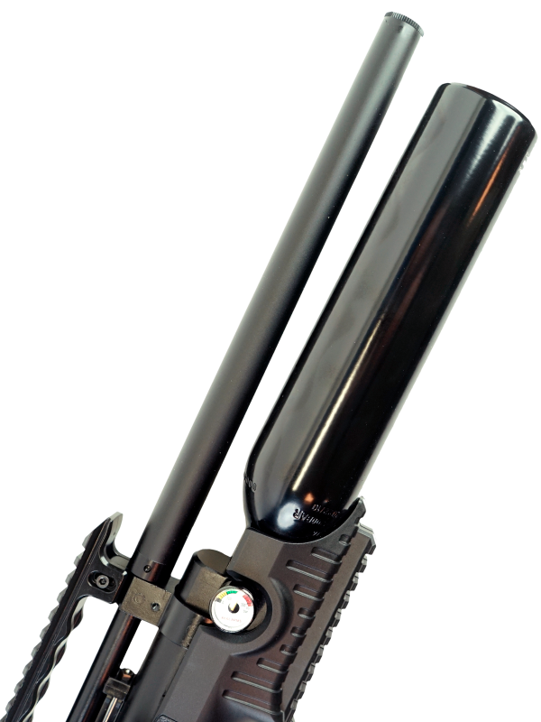 Пуля развивает скорость за счет движения расширяющегося воздуха, который высвобождается из резервуара в момент нажатия на спусковой крючок. Штатный баллон винтовки рассчитан на закачку 600 см3, чего достаточно для осуществления 145 выстрелов с сохранением требуемых показателей мощности. Для заправки PCP оружия используются ручные и электрические насосы, подключающиеся при помощи специального штуцера к ресиверу высокого давления.