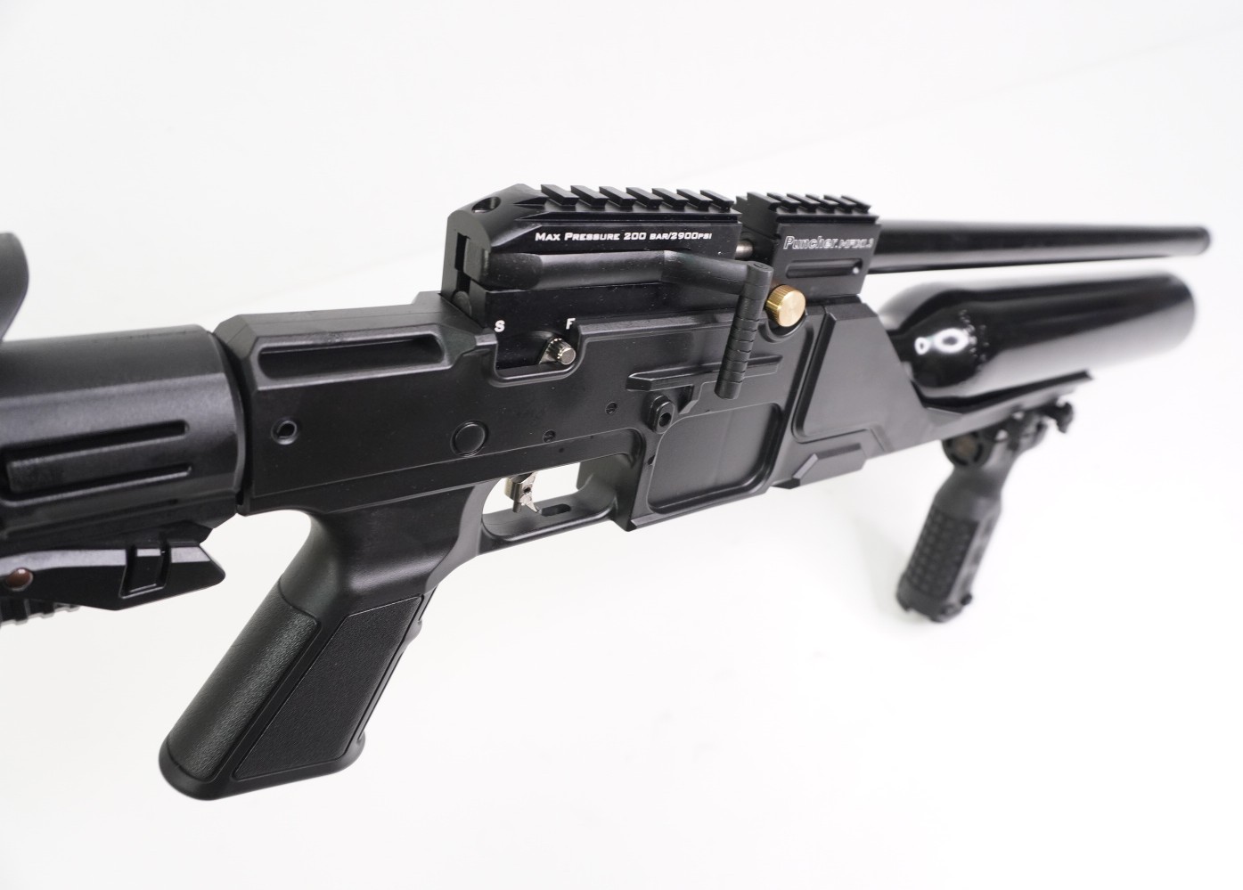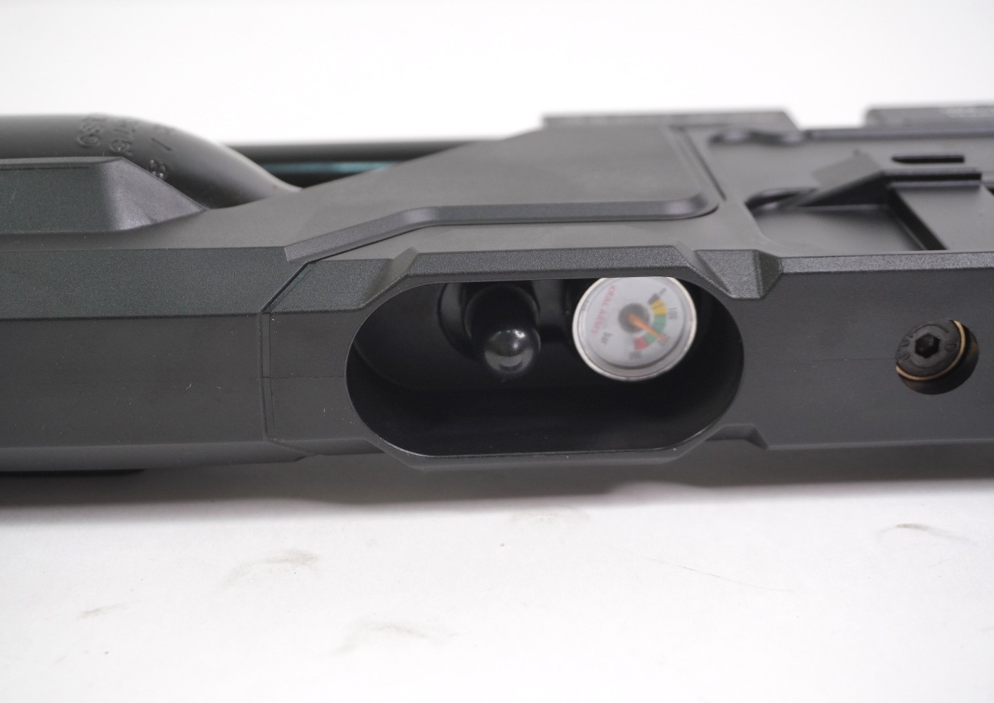 Оружие поставляется с дульной мощностью не более 3 Дж, поэтому разрешено для свободной продажи. Предохранитель здесь ручной, с двумя положениями, он флажкового типа и расположен на ствольной коробке справа. Конструкция перепускного клапана позволяет произвести настройки в зависимости от веса боеприпаса.
