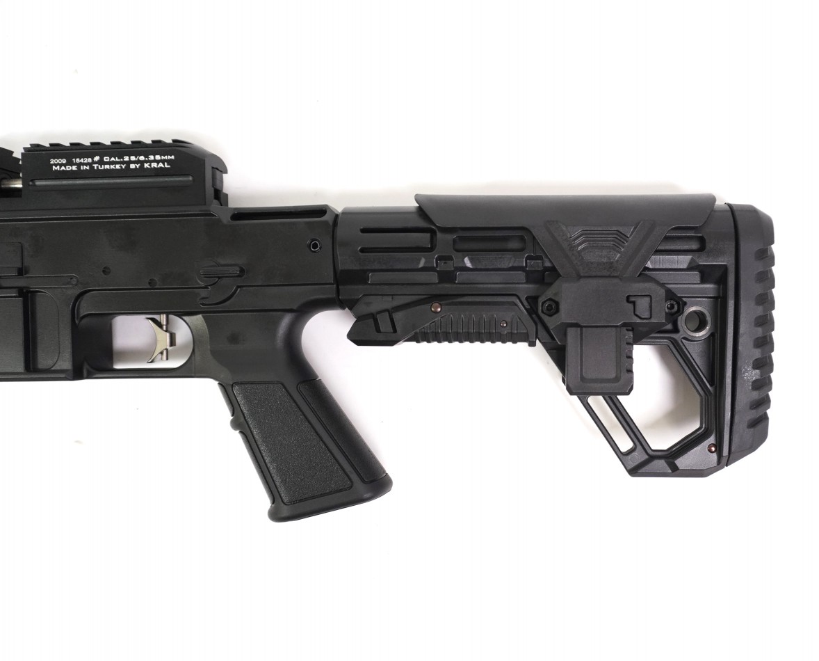 Пневматическая винтовка Kral Puncher Jumbo NP-500 (PCP) 6,35 мм – это модель 2019 года выпуска от турецкого концерна Kral, является одной из популярных вариаций данного типа оружия. Благодаря компактным размерам и улучшенным техническим характеристикам эта модификация завоевала доверие опытных стрелков и начинающих спортсменов. Источником энергии для выстрела является резервуар емкостью 500 кубических сантиметров, наполняемый сжатым воздухом.