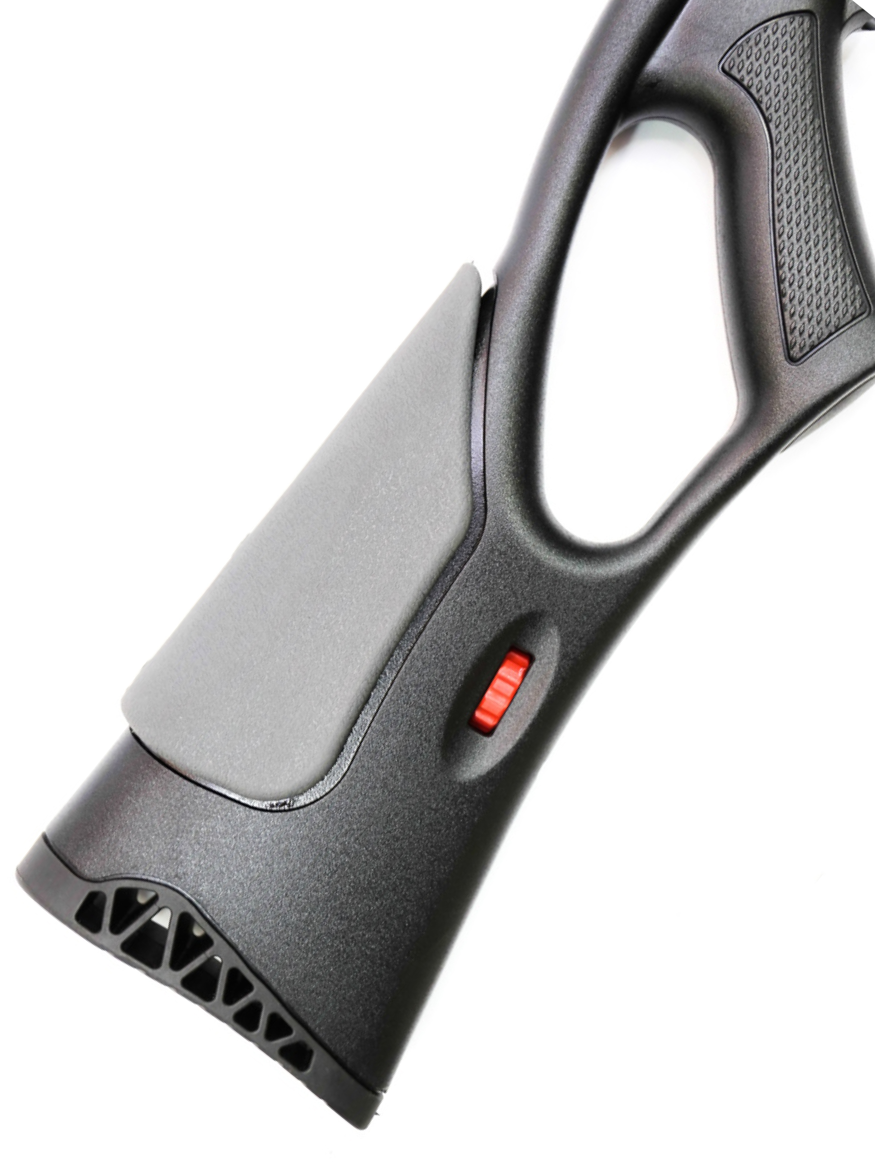 В верхней части приклада винтовки установлен подщечник с возможностью регулировки по высоте. Тыльник прорезиненный, и успешно принимает на себя часть отдачи. Рукоять пистолетного типа, имеет насечки для удобства хвата. Длина винтовки 115 см.