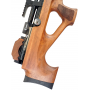 Основной материал ложа — благородный орех, который придает винтовке не только привлекательный внешний вид, но и приятную тактильность, а металлические элементы и резиновый затыльник обеспечивают прочность и комфорт при эксплуатации. Особенностью конструкции является ортопедический приклад с вырезом под большой палец, способствующий естественному и уверенном хвату.