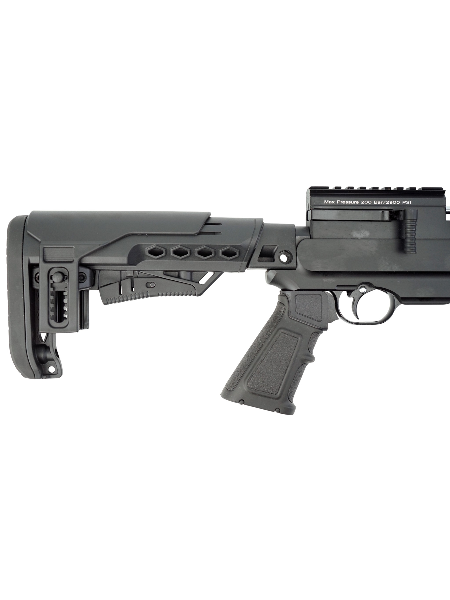Винтовка имеет телескопический приклад с регулируемым подщечником, что позволяет максимально точно настроить оружие под индивидуальные особенности стрелка. Регулируемый спусковой механизм обеспечивает плавное и точное срабатывание, а ручной предохранитель — дополнительную безопасность. База под установку прицела «ласточкин хвост» расширяет возможности модернизации и установки оптического прибора.
