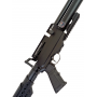 Тактический приклад оборудован пистолетной рукоятью и регулируемым подщечником, что обеспечивает удобный и надежный захват, а также адаптацию под индивидуальные особенности стрелка. Регулируемый спусковой механизм и наличие ручного предохранителя добавляют безопасности и позволяют настроить работу оружия под личные предпочтения.