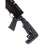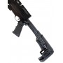 Тактический приклад оборудован пистолетной рукоятью и регулируемым подщечником, что обеспечивает удобный и надежный захват, а также адаптацию под индивидуальные особенности стрелка. Регулируемый спусковой механизм и наличие ручного предохранителя добавляют безопасности и позволяют настроить работу оружия под личные предпочтения.