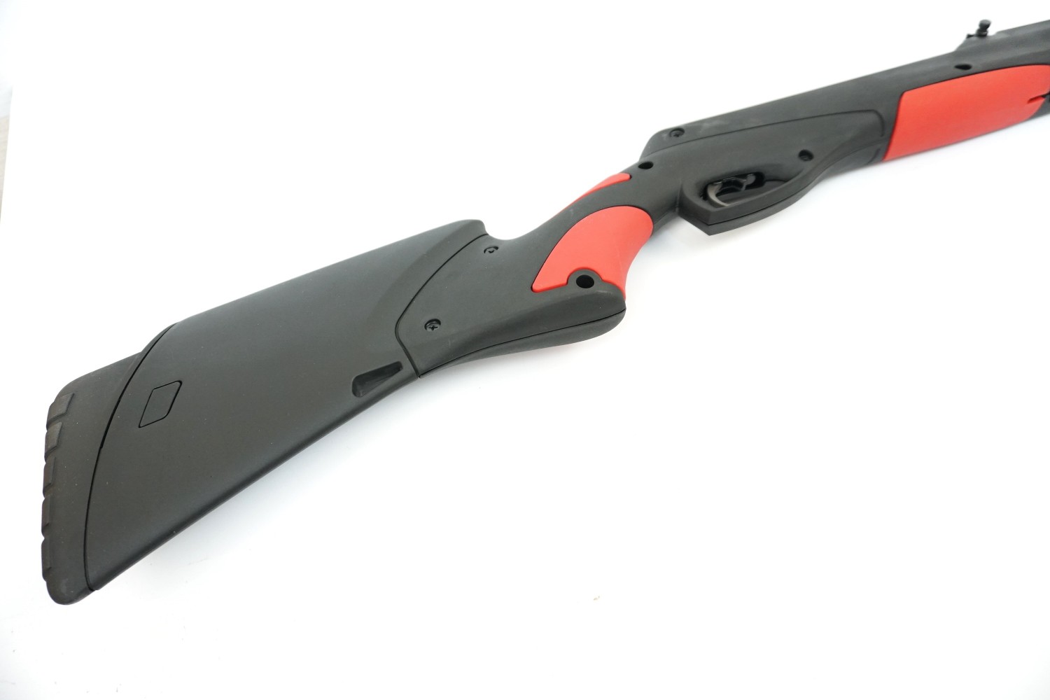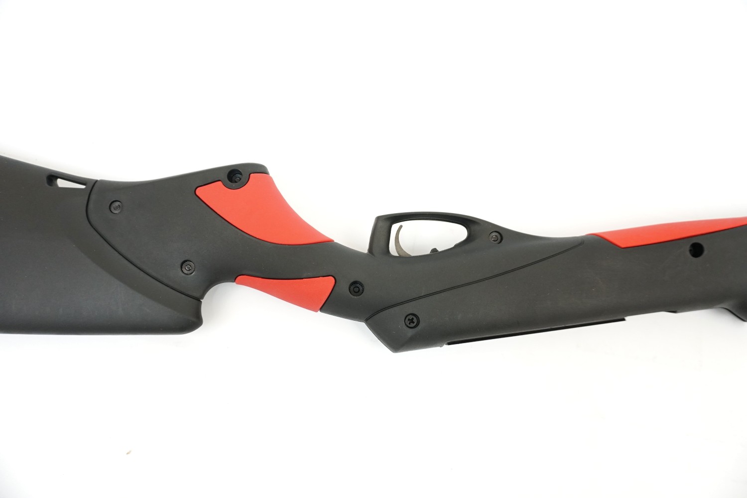 Прицельные приспособления здесь открытого типа, кроме того, имеется планка «ласточкин хвост» для установки оптики. При изготовлении винтовки использовался металл (ствол и курковая часть), стеклонаполненный пластик (ложе, приклад, корпус). Винтовка выполнена в черном цвете с красными вставками на ложе. Общая длина винтовки 109 см, вес 3 кг. Продается в картонной коробке с паспортом.