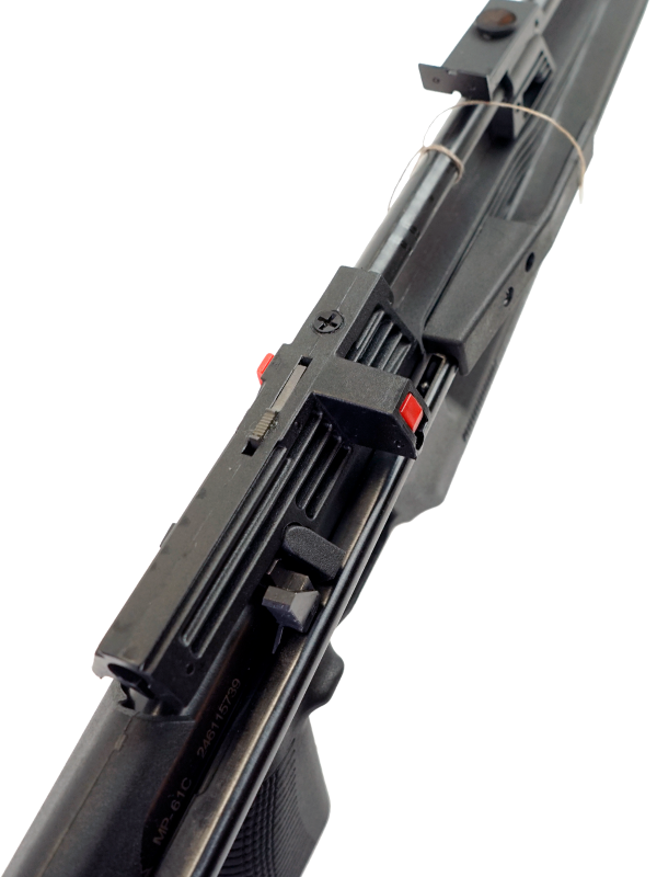 Винтовка МР-61С относится к многозарядной пружинно-поршневой пневматике, взведение пружины здесь осуществляется боковым рычагом. Магазин из полимерного материала вмещает 5 пуль калибра 4,5 мм. Начальная скорость выстрела – 110 м/с. Производителем заявлено, что прицельная дальность винтовки в заводской комплектации составляет 25 метров. За счет неподвижности ствола изделие отличает повышенная износостойкость.