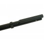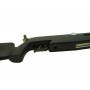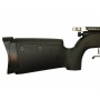 Ложе и приклад изготовлены из прочного оружейного пластика. Все остальные элементы конструкции изготовлены из металла. Обращает на себя внимание — незамкнутая спусковая скоба. Как и другие металлические элементы, они делают вид винтовки весьма футуристический. Весит модель 3,3 кг при длине от 980 до 1020 мм. Все это благодаря тому, что затыльник приклада регулируется по длине, точно также, как и подщечник который можно отрегулировать по высоте.