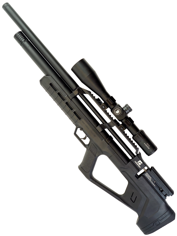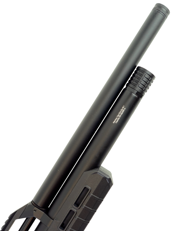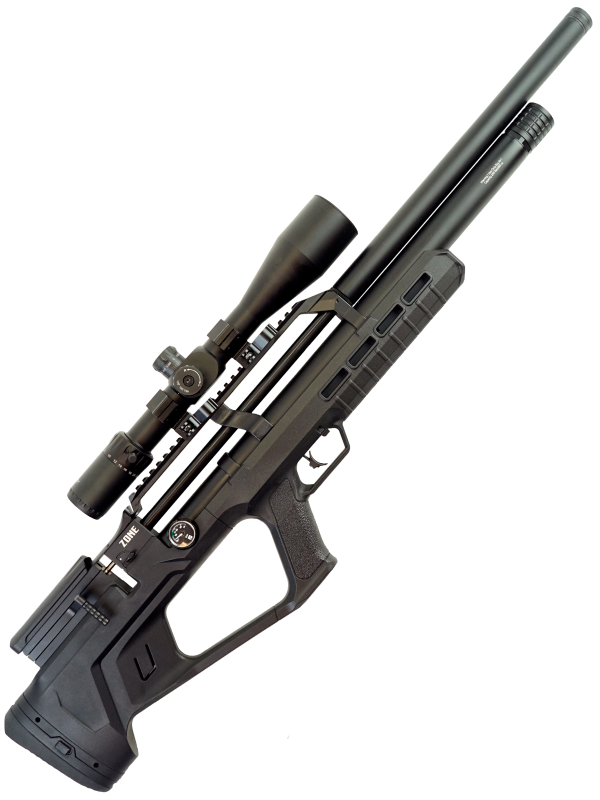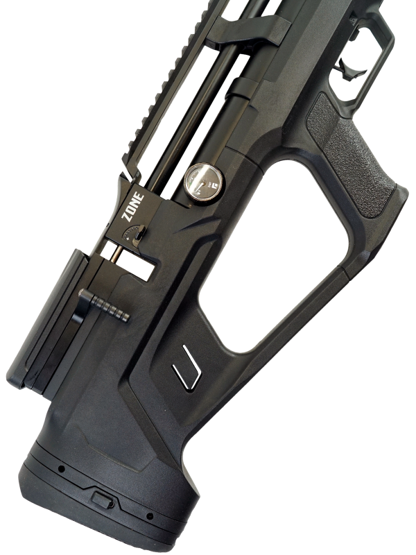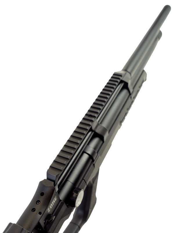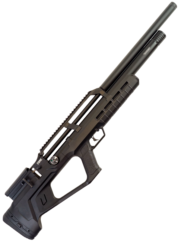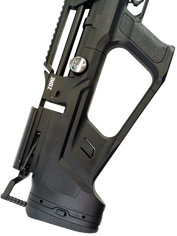Пневматическая винтовка Reximex Zone Black относится к винтовкам с предварительной накачкой (PCP). В корпусе винтовки находится специальный резервуар для воздуха. Сжатый под большим давлением воздух и служит источником выстрела. Для быстрой заправки резервуара поможет насос высокого давления со встроенным манометром, либо компрессор. Резервуар объемом 260 см3, максимальное давление - 250 бар.