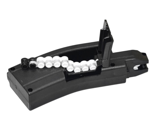 Ленточный, уникальной конструкции магазин рассчитан на 30 единиц боеприпасов, это позволяет вести стрельбу продолжительное время. Предохранитель механического типа в виде тумблера предотвращает вероятность несанкционированного выстрела. Ствол винтовки стальной, внутри установлены нарезы для повышения кучности и результативности стрельбы. Так как дульная энергия винтовки не более 7,5 Дж, она относится к изделиям, разрешенным к свободной продаже.