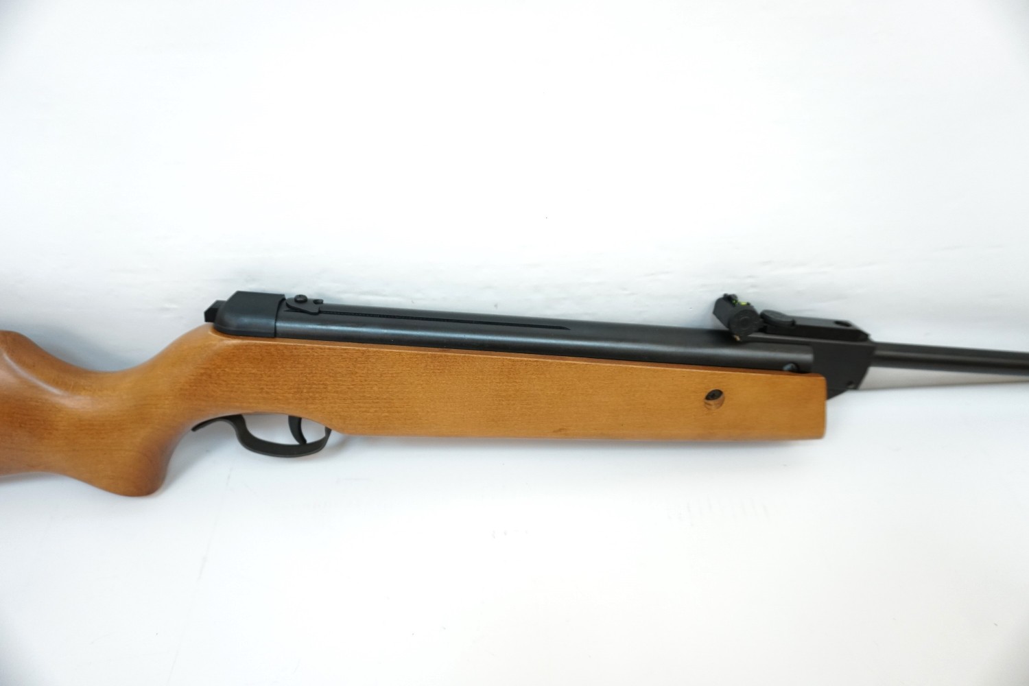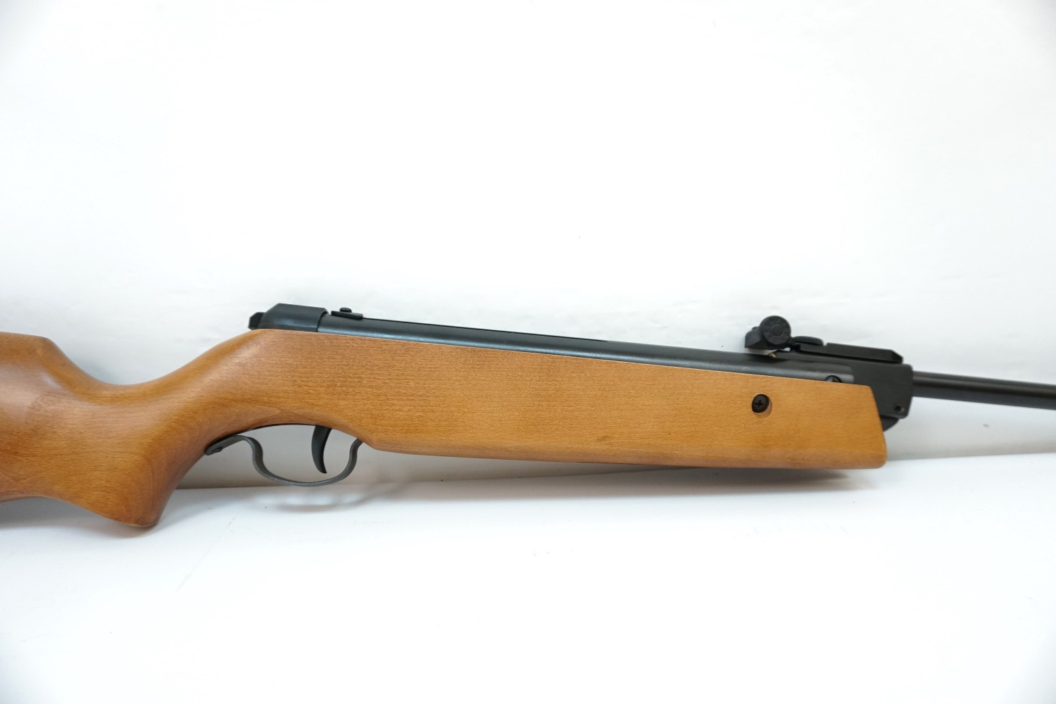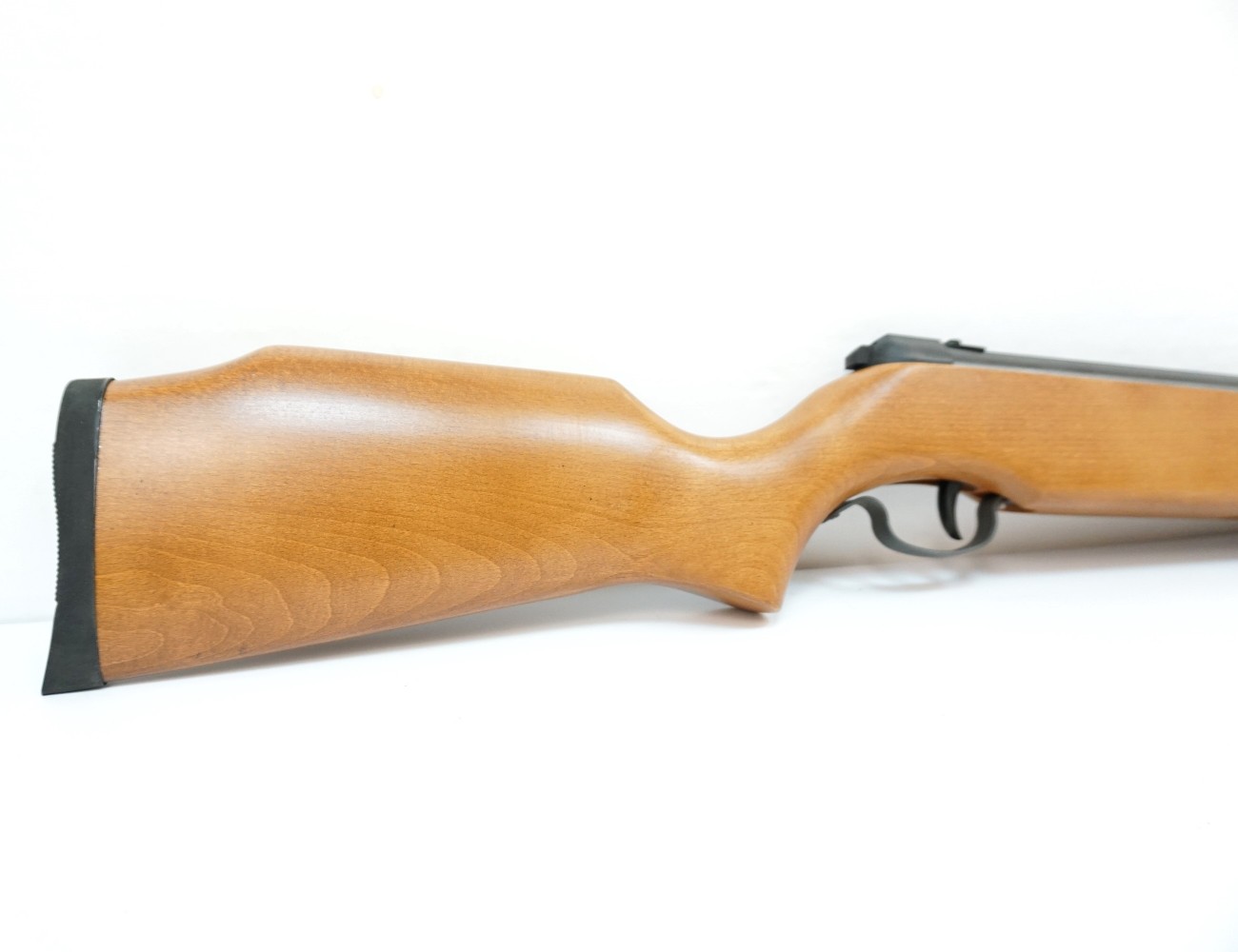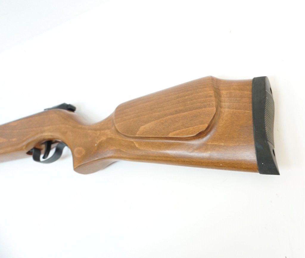 Невысокая дульная мощность модели в заводском исполнении позволяет купить такую модель каждому совершеннолетнему. Ствол винтовки с нарезами, установлен двухпозиционный предохранитель.