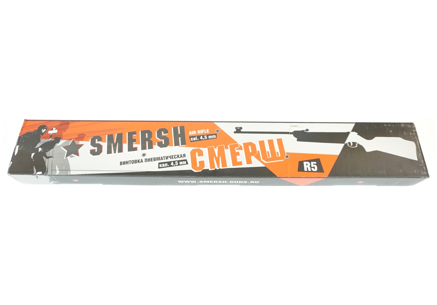 Пневматическая винтовка Smersh R5 (дерево, 3 Дж) – это красивая, легкая и удобная в эксплуатации модель для начинающих стрелков. Винтовка относится к «переломкам» пружинно-поршневого типа, здесь движущей силой выступает сжатая пружина.