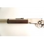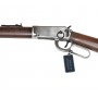 Модель разработана под баллоны с газом 88 г, баллон устанавливается в приклад с тыльной его стороны. Перезарядка винтовки Umarex Walther Lever Action Steel Finish производится аналогично боевому прототипу – с помощью скобы Генри. В отличие от прототипа, в этой винтовке установлен барабанный магазин, скрытый в корпусе.