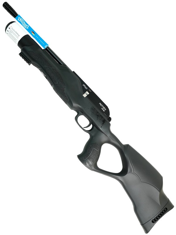 Walther Rotex RM8 Varmint - качественная пневматическая винтовка премиального уровня от немецкой компании Umarex. Модель использует зарекомендовавшую себя систему PCP с предварительной накачкой и резервуаром высокого давления (баллон со сжатым газом). Полностью накачанный резервуар Rotex RM8 Varmint способен обеспечить до 100 выстрелов. Он расположен снизу цевья и оснащен манометром. Для стрельбы подойдут пульки калибра 5,5 мм. Магазин барабанного типа вмещает в себя до 8 зарядов. Предохранитель ручного типа. Ствол нарезной со съемным дульным компенсатором. Усилие длины спускового крючка можно регулировать. Пластиковый приклад имеет пистолетную рукоять для удобного хвата при стрельбе. Прицельная планка «Ласточкин хвост» позволит установить любой поддерживаемый оптический или коллиматорный прицел. Удобный затыльник эффективно гасит отдачу.