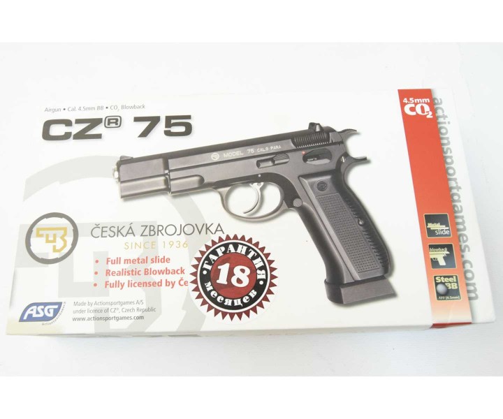 Пневматический пистолет ASG CZ 75 blowback – реплика популярного чешского пистолета CZ-75 P-07 Duty. Компания ASG производит реалистичные копии известного во всем мире боевого оружия, ее продукция имеет спрос среди любителей стрелковой стрельбы в разных странах, в том числе и в России.