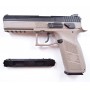 ASG CZ P-09 DT-FDE - это тактический полноразмерный пневматический пистолет с полноценной планкой Вивера для установки лазерного указателя и/или фонаря. Это пневматический пистолет, производимый в Японии по лицензии CZ, сконструирован по оригинальным чертежам, что отлично обеспечивает реалистичность обращения и внешнего вида. Данная версия выполнена в двухцветном стиле - песочный и черный.