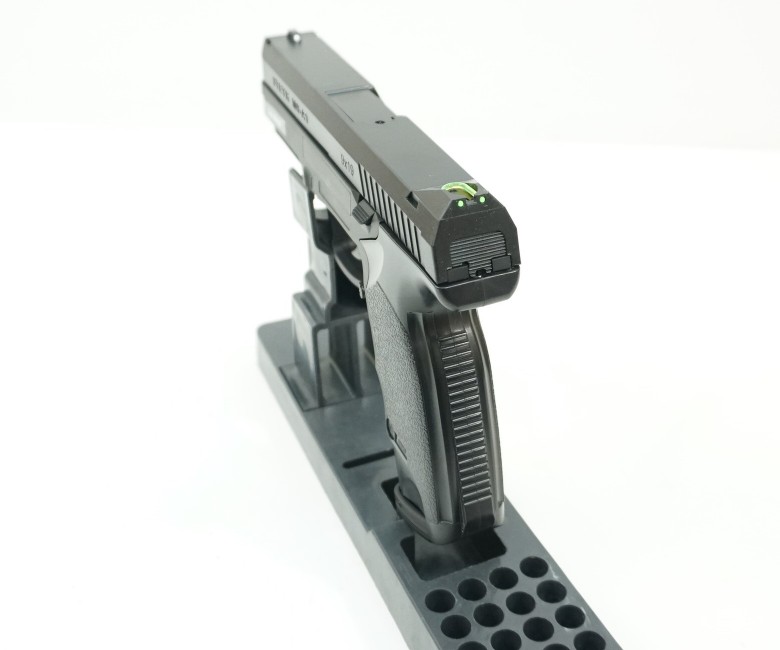 Оптоволоконная вставка тоже значительно облегчает процесс прицеливания, помогает «поймать» цель быстро. Если видимость плохая, то стандартный прицел можно сменить на тритиевый - вариант прямоугольной формы. Благодаря подствольной планке Пикатинни возможна быстрая установка дополнительных устройств освещения, прицеливания (фонарь, лазерный целеуказатель).