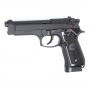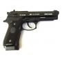 Модель этого пневматического пистолета практически полностью выполнена из металла шероховатой фактуры (кроме накладок на рукоять – они пластиковые). Благодаря рифленым накладкам пистолет надежно и удобно лежит в руке. Модель полностью соответствует своему прототипу как внешне, так и по конструкции. Вес пистолета – 885 г, длина – 213 мм (ствол составляет 133 мм). Пистолет выполнен в классическом черном цвете, и выглядит он грозно и реалистично.