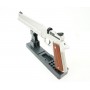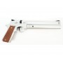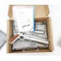 Изделие выполнено в эффектном серебристом цвете. Весит пистолет 1 кг, его длина 36,5 см. Планка типа «ласточкин хвост» предусматривает возможность использования оптики. Целик с мушкой регулируемые. В комплект пистолета входит магазин, шестигранник, ЗИП, а также паспорт. Упаковка – картонная коробка с ручкой.
