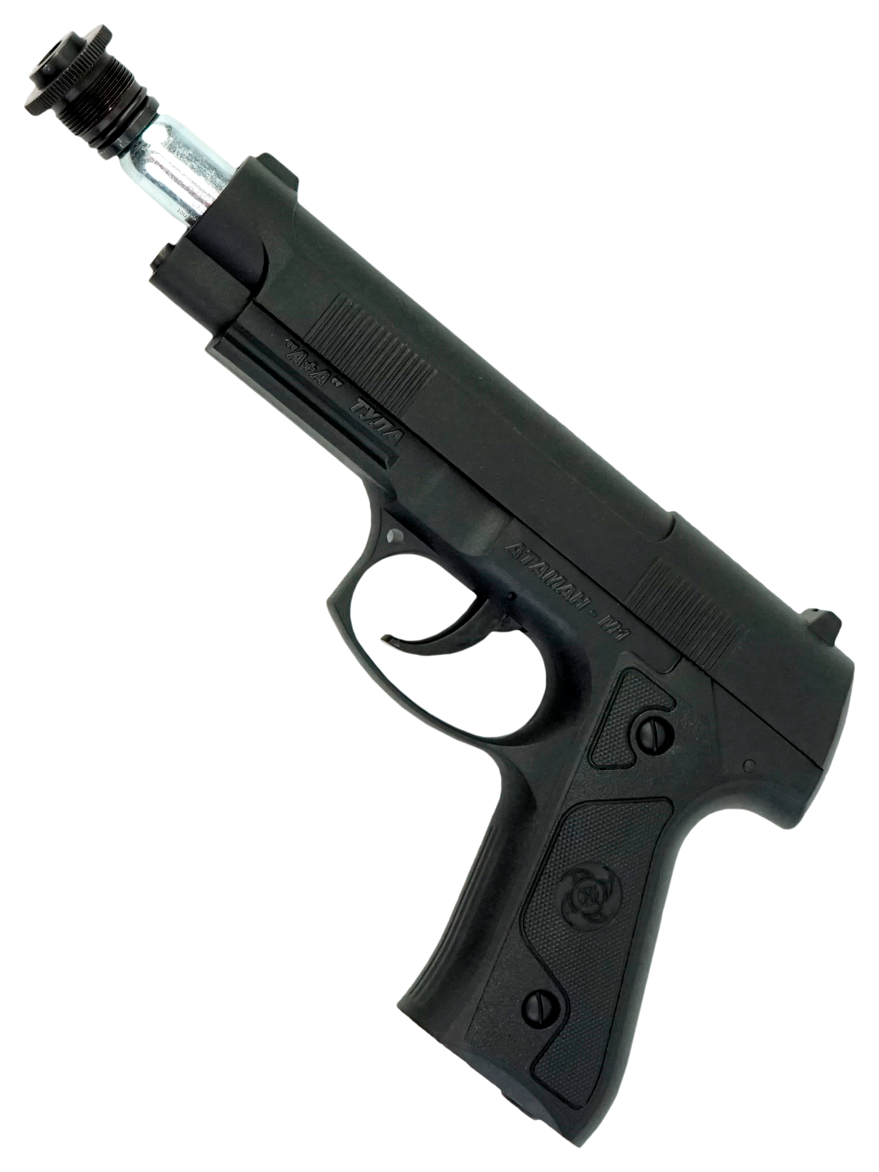 Пневматический пистолет Атаман-М1 производится тульскими умельцами компании «А+А» и предназначается для тренировок, учебной и развлекательной стрельбы. По дизайну данное устройство выполнено в стиле модели Beretta 92. Модель снабжена ударно-спусковым механизмом с наличием двойного действия, а потому достаточно одного нажатия на спуск. Спуск является мягким, легким, равномерным. Применение пистолета с таким механизмом является очень практичным при непрерывной стрельбе.