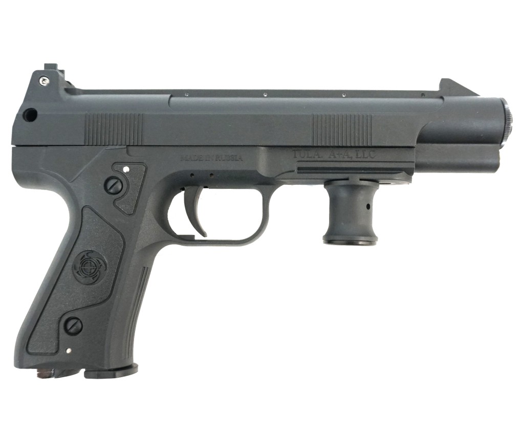 Пистолет Атаман-М2 от бренда «А+А» (Тула) отличается наличием регулируемых мушки и целика, в качестве дополнительной опции возможна установка планки Вивера для использования аксессуаров. Есть возможность установки саундмодератора. Пистолет имеет простую и надежную конструкцию, ствол и основа изготовлены из металла, его корпус – пластиковый. Предусмотрен кнопочный переключатель. Длина пистолета составляет 24,7 см, а вес – 0,7 кг. Комплектация состоит из штуцера в сборе, ремкомплекта, магазина, заправочного клапана, а также паспорта.