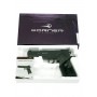 Бюджетная модель изготавливается из высокопрочного пластика и весит всего 600 гр. Неподвижность элементов служит лишь декорацией Borner Power Win 304, но рычаг затворной задержки, предохранители и курок внешне сильно напоминают боевой пистолет. На месте, где выбрасываются гильзы, расположена отличная имитация внутреннего ствола из вставки цвета «металлик».