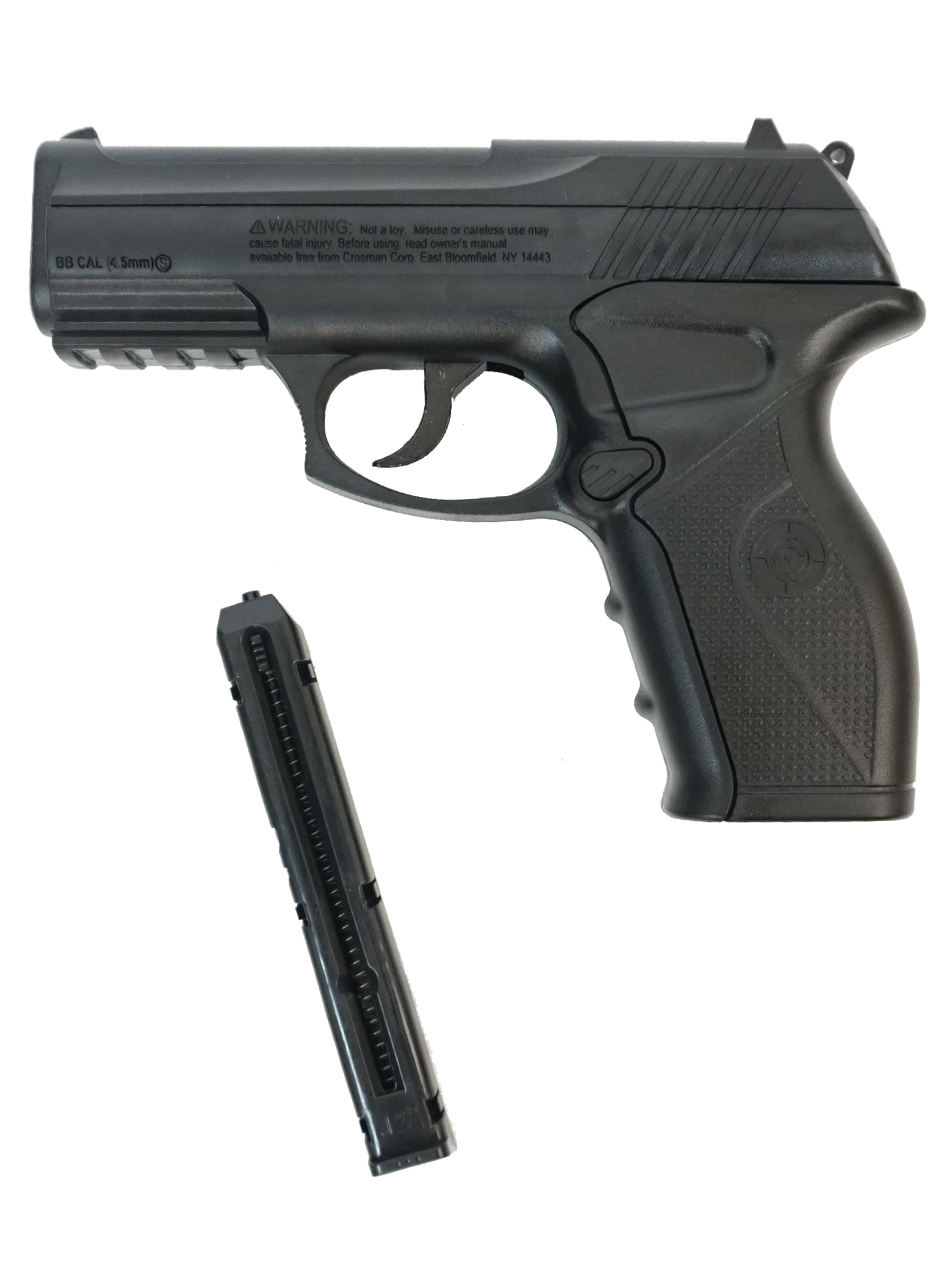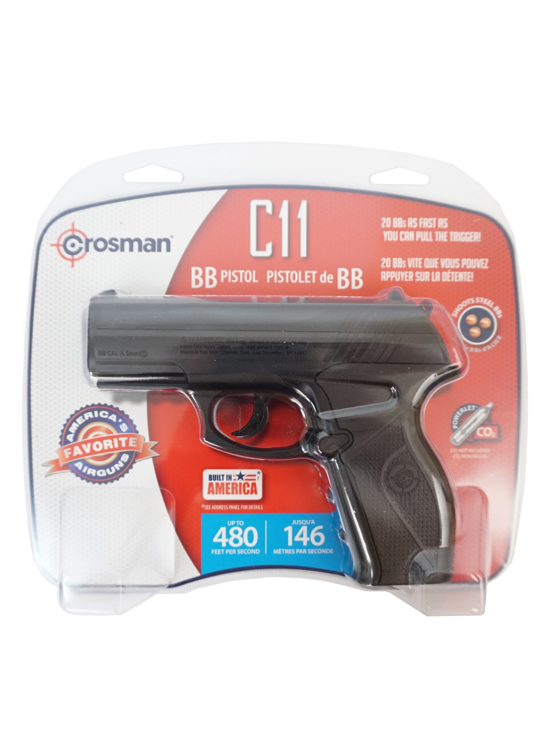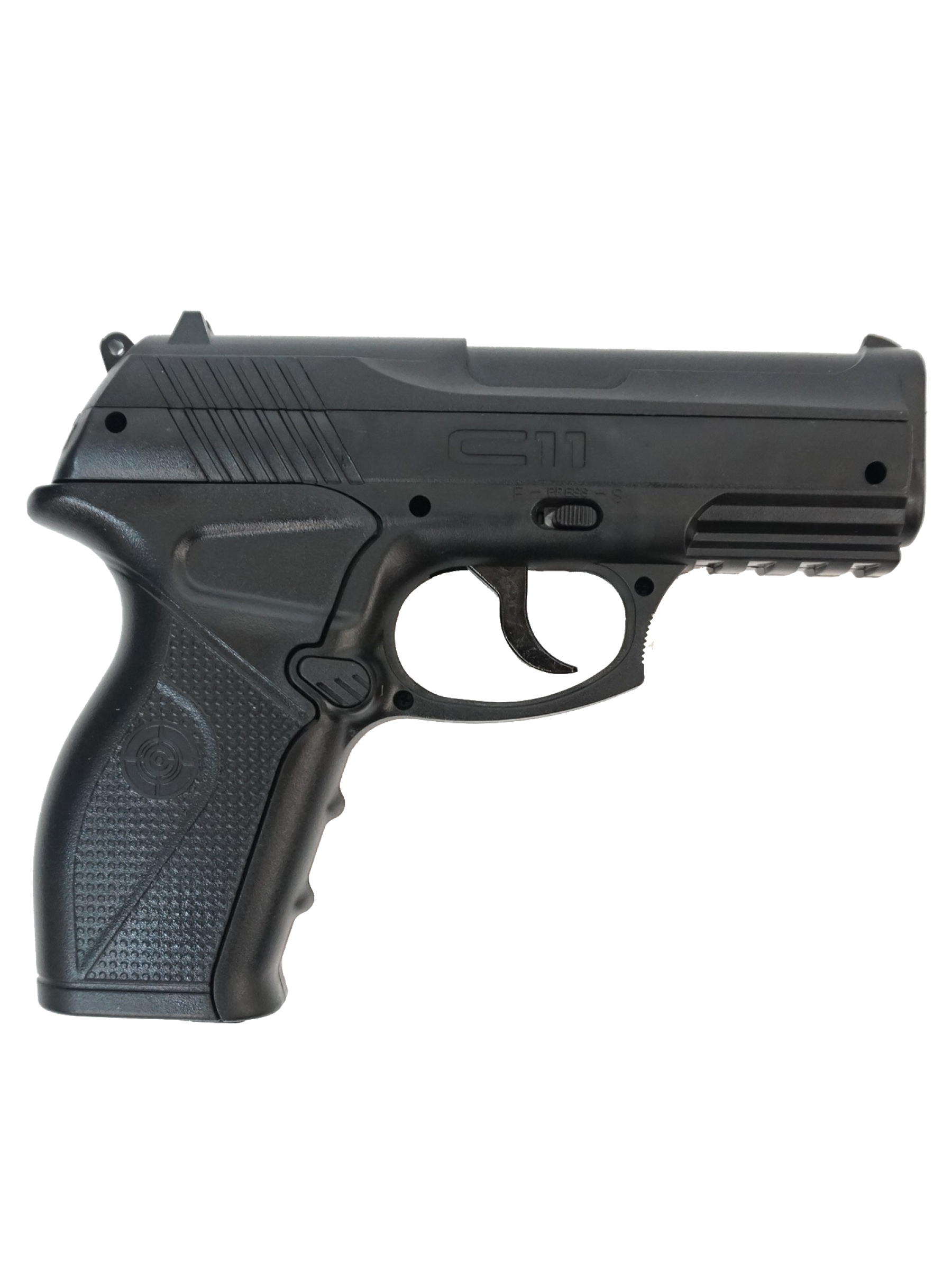 Производить начали в 2006. Целиком пластиковый корпус, на котором расположены те же пластиковые прицельные приспособления, они нерегулируемые. На мушке нанесена белая точка. Crosman C11 - прекрасный пистолет для развлечений по небольшой цене. Один из мощнейших "развлекательных" CO2 пистолетов. Принадлежит к бюджетным моделям, размеры миниатюрные, длина 170 мм.
