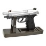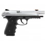 Ствол и корпус модели выполнены из металла, рамка пистолета пластиковая, на рукоятке установлены накладки из полимерного материала с подпальцевыми выемками. Цвет серебристо-черный. Подствольная планка позволяет дополнить оружие аксессуарами. Есть неавтоматический кнопочно-сдвижной предохранитель.