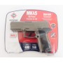 Пневматический пистолет Crosman MK45 – это представитель газобаллонной пневматики от известного производителя, новинка с пружинным поршнем и взведением передергиванием затвора. Движущей силой этого пистолета является 12-граммовый баллончик с углекислым газом. Баллон устанавливается в отсек под рукоятную накладку, и поджимается встроенным винтом с барашковым механизмом. Объема сжатого газа в баллончике хватает примерно на 80 выстрелов.