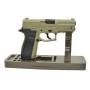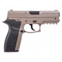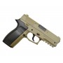 Наличие подствольной направляющей позволяет использовать пистолет с дополнительными аксессуарами в виде лазерного целеуказателя или фонарика. Штатные прицельные приспособления пистолета – целик с мушкой неподвижной конструкции. Модель отличает узнаваемый дизайн и песочно-черное исполнение.