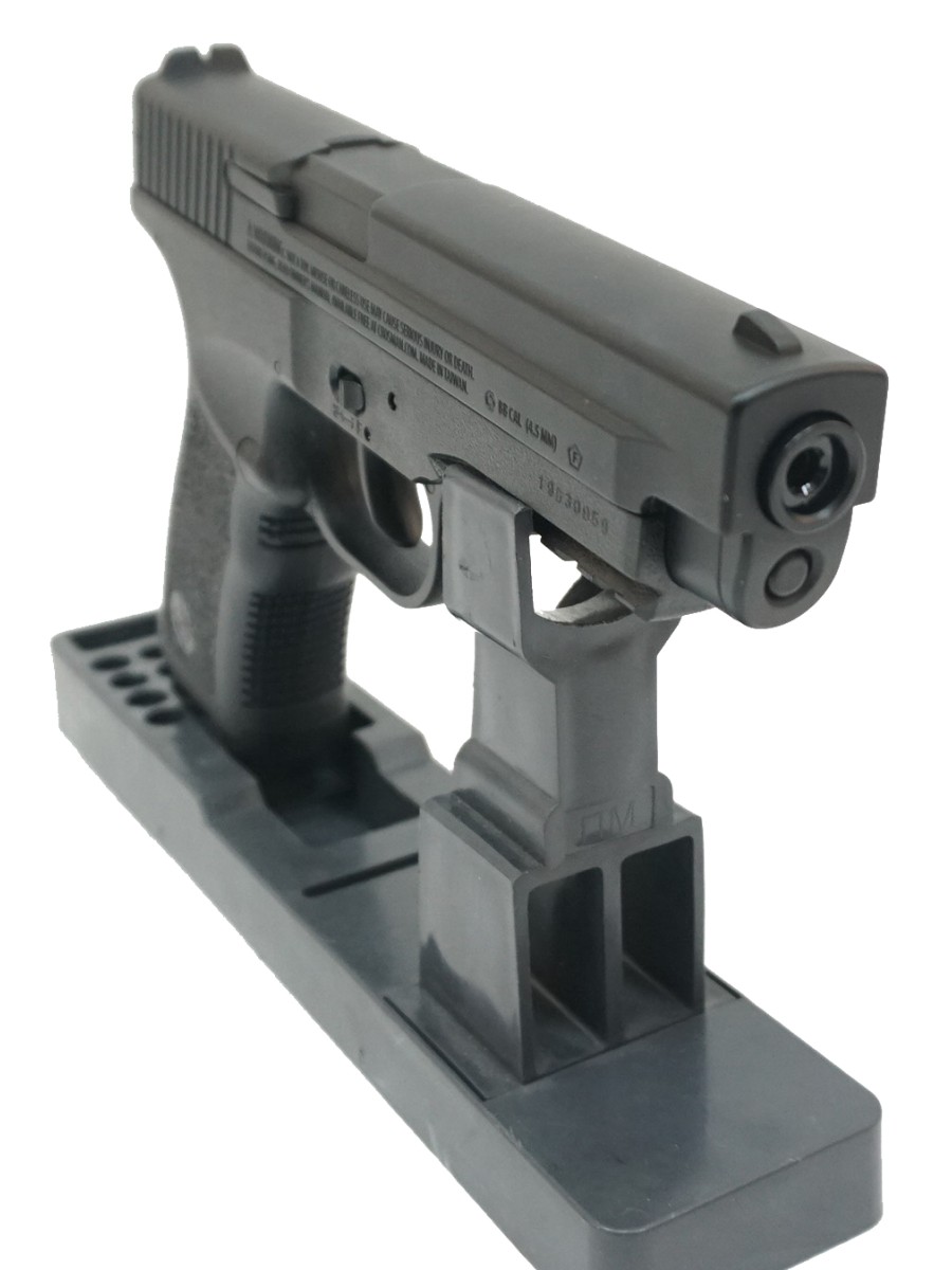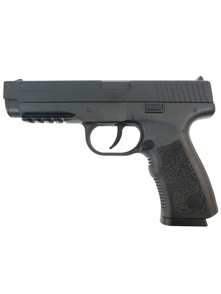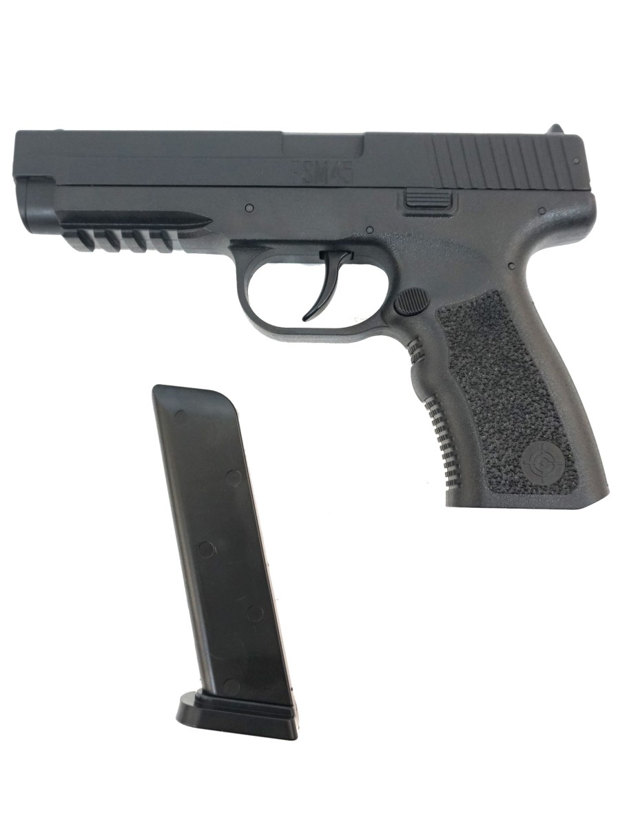 Пневматический пистолет Crosman PSM45 (Glock 17) – это пружинно-поршневая модификация, разработанная американским брендом и собранная в Тайване. Пистолет имеет источник энергии в виде пружины, взводимой путем передергивания затвора. Безусловным достоинством такого оружия является отсутствие необходимости приобретать газовые баллончики, необходимые для газобалонной пневматики.