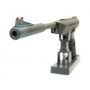 На корпусе имеется планка для установки оптики («ласточкин хвост»). Есть и стационарные прицельные приспособления – целик и мушка регулируемого типа, с фиберглассовыми нитями. За счет нарезов в стволе пуля стабильна при полете. Оружие отличается хорошей сбалансированностью и имеет впечатляющий дизайн. Длина пистолета 45 см, вес 1,5 кг. В комплекте идет надульник и руководство пользователя.
