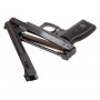 Процесс производства выстрела прост: при сдвигании вперед двух флажков сзади затвора освобождается затвор-насос, далее магазин заряжается боеприпасами, их поджимает подаватель. Модель снащена кнопочным предохранителем с двумя рабочими положениями – безопасным и боевым, он находится в месте соединения скобы спуска и рукоятки. Длина – 210 мм, весит изделие 585 грамм.