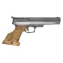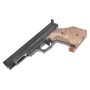 Как боеприпасы для данной модели можно применять классические свинцовые пули. Для снижения либо увеличения усилий, необходимых для совершения выстрела, надо нажать на специальный рычаг. Данное удобство позволяет пользоваться пистолетом Gamo Compact даже детям. Основа декора рукоятки - ореховое дерево.