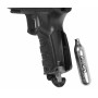 Пистолет отличается мягким спуском. Под стволом имеется планка Weaver для монтажа дополнительного обвеса – ЛЦУ, прицела или фонаря. Целик и мушка здесь стационарные, наличие белых точек помогает прицелиться. Основной материал – качественный ударопрочный пластик, ответственные элементы металлические. Поверхность рукоятки рифленая. Весит пистолет 0,54 кг при длине 19 см. Изделие поставляется с паспортом и магазином.