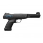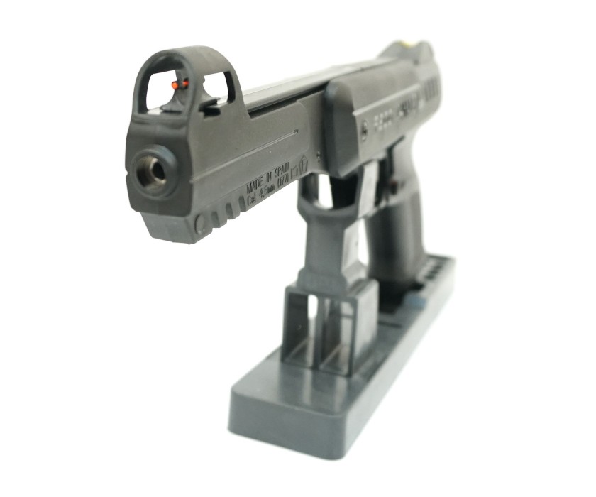 За счет свой простой конструкции пистолет обладает высоким ресурсом количества выстрелов. Ствол изготовлен из металла, корпус пистолета пластиковый, благодаря минимуму металла в узлах изделие отличается легким весом. Рукоять оружия прорезинена для обеспечения комфортного хвата. Возможна регулировка прицела в вертикальной плоскости. Данный экземпляр отличается оригинальным футуристическим дизайном, и при длине в 32 см весит всего 0,7 кг. В комплекте – паспорт с инструкцией и магазин.