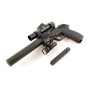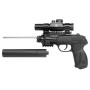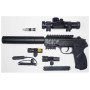 | Комплектация (?): | пистолет, клип-барабан - 2 шт., шестигрнные ключи, фальшглушитель, тактический фонарь 80 Lumen, лазерный целеуказатель (ЛЦУ), коллиматорный прицел RGB 20mm, пули, инструкция, кейс |