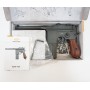 Новая модель от Gletcher - пневматическая копия пистолета Маузера образца 1932. Основные особенности Gletcher M712 - целиком рабочая автоматика, система blowback, подвижный затвор, возможность стрельбы очередями и неполная разборка. Корпус полностью металлический, в магазин вмещается 21 пуль, калибр которых 4,5. Масса пневматического маузера - около 1,4 кг (очень близко к оригиналу).